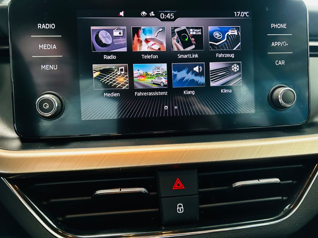 8 Lautsprecher, Ablagefach für Regenschirm, Ablagefach mit Cargo-Organizer (Gepäck-/Laderaum), Ablagetasche an Vordersitzlehnen, Airbag Beifahrerseite abschaltbar, Airbag Fahrer-/Beifahrerseite, Antriebs-Schlupfregelung (ASR), Außenspiegel elektr. verstell- und heizbar, Außenspiegel Wagenfarbe, Bremsassistent, Brillenfach, Dachhimmel grau, Einparkhilfe hinten, Elektr. Bremskraftverteilung (EBV), Elektron. Differentialsperre (EDS), Elektron. Querdifferentialsperre (XDS), Fahrassistenz-System: Auffahrwarnsystem mit City-Notbremsfunktion (Frontradar-Assistent), Fahrassistenz-System: Berganfahr-Assistent (Hill-Holder), Fahrassistenz-System: Einschaltautomatik für Fahrlicht (Fahrlichtassistent), Fahrassistenz-System: Multikollisionsbremse (Multi Collision Brake), Fahrassistenz-System: Spurhalteassistent (Lane Assist), Fensterheber elektrisch vorn + hinten, Freisprechanlage Telefon mit Bluetooth, Geschwindigkeits-Regelanlage (Tempomat) inkl. Geschwindigkeits-Begrenzeranlage, Heckleuchten LED mit dynamischem Blinklicht, Heckscheibe heizbar, Infotainment-Paket Bolero, Innenausstattung: Dekoreinlagen Kupfer, Innenraumfilter: Staub- und Pollenfilter, Isofix-Aufnahmen für Kindersitz an Beifahrersitz, Isofix-Aufnahmen für Kindersitz an Rücksitz, Karosserie: 5-türig, Kennzeichenbeleuchtung LED, Klimaanlage Climatronic 2-Zonen, Kopf-Airbag-System, Lendenwirbelstütze Sitz vorn links, Lendenwirbelstütze Sitz vorn rechts, Lenkrad (Leder - 3-Speichen) mit Multifunktion, Lenkrad (Leder - 3-Speichen) mit Multifunktion und Schaltfunktion, Lenksäule (Lenkrad) verstellbar (vertikal / axial), Lichtassistent (Coming Home, Leaving Home), LM-Felgen, Motor 1,5 Ltr. - 110 kW 16V TSI ACT, Multifunktionsanzeige, Nebelscheinwerfer mit Abbiegelicht, Notrufsystem, Otto-Partikelfilter (OPF), Radioempfang digital (DAB+), Reifen-Reparaturkit, Reifendruck-Kontrollsystem, Rücksitzbank klappbar 1/3-2/3, Rücksitzlehne geteilt/klappbar (1/3-2/3), Schadstoffarm nach Abgasnorm Euro 6d-TEMP, Schalt-/Wählhebelgriff Leder, Scheinwerfer Teil-LED (Tagfahrlicht und Abblendlicht), Seitenairbag vorn, Service-System: Remote Services, Servolenkung elektronisch (Servotronic), Sitz vorn links höhenverstellbar, Sitz vorn rechts höhenverstellbar, Sitzbezug / Polsterung: Stoff Style, Sitzheizung vorn, Sonnenblende rechts mit Spiegel, Start-Stop-Knopf (Start/Stop-Anlage ohne Schlüssel), Start/Stop-Anlage, Steckdose (12V-Anschluß) im Koffer-/Laderaum, Textilfussmatten, Türgriffe außen Wagenfarbe, USB-Schnittstelle vorn (2-fach, Typ C), Verzurrösen Koffer-/Laderaum, Sitzheizung vorn