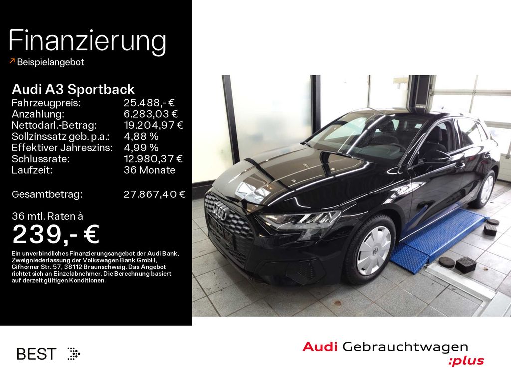 Scheinwerfer; Batterie 380A (59Ah) EFB+; Sportback; Fußhebelwerk "Standard"; Audi Neuwagen-Reifengarantie; Verbundlenker-Hinterachse; Fußmatten vorn und hinten; Kindersicherung elektrisch betätigt; Fensterzierleisten in Schwarz; Dekoreinlagen Seideneffektlack platingrau; Seitenschweller Standard; Außenspiegel elektrisch einstell- und beheizbar