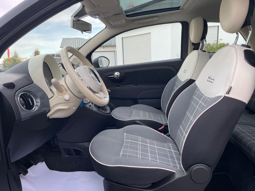 Airbag Fahrer-/Beifahrerseite, Autom. Begleitfunktion der Beleuchtung (Follow me home), Automatische Türverriegelung, Außenspiegel elektr. verstell- und heizbar, beide, Beifahrerairbag abschaltbar, Bordcomputer, Chrom-Paket, Elektr. Bremskraftverteilung, Fahrassistenz-System: Bremsassistent, Geschwindigkeits-Begrenzeranlage, Heckscheibe heizbar, Infotainment-System: UConnect (Touchscreen 5"), Innenausstattung: Dekoreinlagen Armaturenbrett, lackiert, Isofix-Aufnahmen für Kindersitz an Rücksitz, Karosserie: 3-türig, Knieairbag Fahrerseite, Kopf-Airbag-System vorn und hinten, Kopfstützen hinten, Kühlergrill verchromt, Lenksäule (Lenkrad) höhenverstellbar, LM-Felgen, Modellpflege, Motor 1,2 Ltr. - 51 kW KAT, Panoramadach (Glas), Positions-Memory für Beifahrersitz, Reifen-Reparaturkit, Reifendruck-Kontrollsystem, Rücksitz geteilt / klappbar, Schadstoffarm nach Abgasnorm Euro 6, Seitenairbag vorn, Steckdose (12V-Anschluß) im Armaturenbrett, Steckdose (12V-Anschluß) vorn, Stoßfänger Wagenfarbe, Tankdeckel abschließbar, Türgriffe außen verchromt, Wärmeschutzverglasung