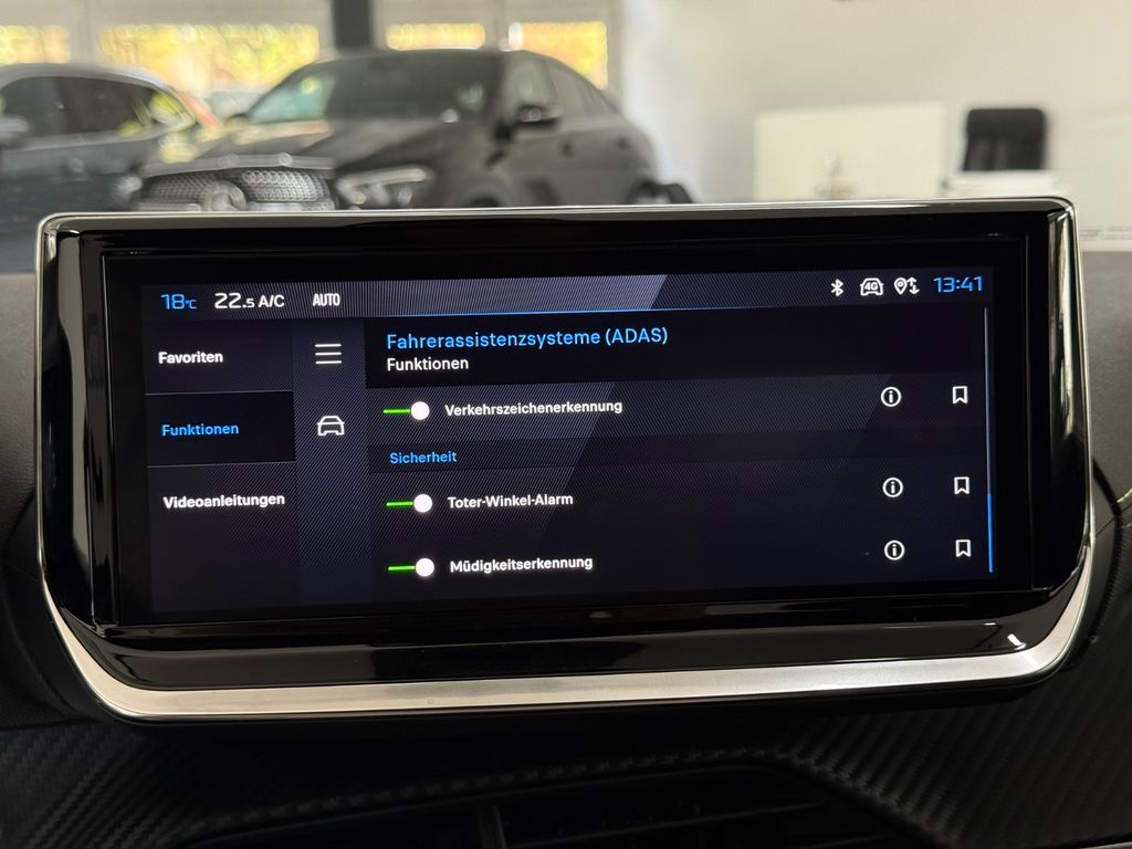 Airbag Beifahrerseite abschaltbar, Airbag Fahrer-/Beifahrerseite, Ambiente-Beleuchtung, Antischlupfregelung (ASR), Autom. Begleitfunktion der Beleuchtung (Coming Home, Leaving Home), Außenspiegel elektr. anklappbar, Außenspiegel elektr. verstell- und heizbar, beide, Außenspiegel mit Abdeckkappen schwarz, Blinkleuchte in Außenspiegel integriert, Bordcomputer, Dachhimmel mit LED-Beleuchtung, Dachhimmel schwarz, Einparkhilfe hinten, Einparkhilfe vorn und hinten, Einschaltautomatik für Fahrlicht, Elektr. Bremskraftverteilung, Fahrassistenz-System: Aktiver Notbrems-Assistent (Active Safety Brake), Fahrassistenz-System: aktiver Spurassistent (Lenkunterstützung), Fahrassistenz-System: Berganfahrhilfe, Fahrassistenz-System: Fernlichtassistent, Fahrassistenz-System: Kollisionswarnsystem, Fahrassistenz-System: Müdigkeitserkennungs-Sensor, Fahrassistenz-System: Verkehrszeichenerkennung, Fahrmodusschalter, Fensterheber elektrisch hinten, sequentiell, mit Einklemmschutz, Fensterrahmen / Zierleisten schwarz glänzend, Frontscheibe geräuschdämmend, Fußmatten, Getriebe Automatik - Doppelkupplungsgetriebe (6-Stufen, Hybrid), Getränkehalter vorn, Heckleuchten Voll-LED, Heckscheibe heizbar, Heckschürze, schwarz glänzend, Heckspoiler schwarz glänzend, Infotainment-System i-Connect, Innenraumfilter: Staub- und Pollenfilter, Innenspiegel mit Abblendautomatik, Isofix-Aufnahmen für Kindersitz, Karosserie: 5-türig, Kartentasche an Vordersitze, Kindersicherung elektrisch, Klimaautomatik, Kopf-Airbag-System hinten, Kühlergrill Wagenfarbe, Lenkrad mit Multifunktion, LM-Felgen, Mild-Hybrid 100 kW (Motor 1,2 Ltr. - 100 kW), Mobile Online Dienste Mirror Screen, Modellpflege, Multifunktionsanzeige mit Farbdisplay (DGT10CHD), Otto-Partikelfilter (GPF), Parkbremse elektrisch, Pedale Aluminium, Peugeot Connect-Box / SOS-Taste (Notruf für Lokalisierung Fahrzeug), Pyrotechnischer Gurtstraffer, Radioempfang digital (DAB+), Reifendruck-Kontrollsystem, Rückfahrkamera mit 180° Umgebungsansicht, Rücksitzbank klappbar 1/3-2/3, Rücksitzlehne geteilt/klappbar, Schadstoffarm nach Abgasnorm Euro 6e, Scheinwerfer Full-LED, Seitenairbag vorn, Seitenscheiben hinten und Heckscheibe dunkel getönt, Sitz vorn links höhenverstellbar, Sitz vorn rechts höhenverstellbar, Sitzbezug / Polsterung: Stoff/Kunstleder, Sonnenblenden mit Spiegel (beleuchtet), Start/Stop-Anlage, Türgriffe außen Wagenfarbe, Warnanlage für Sicherheitsgurte