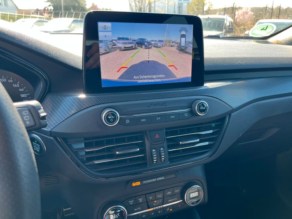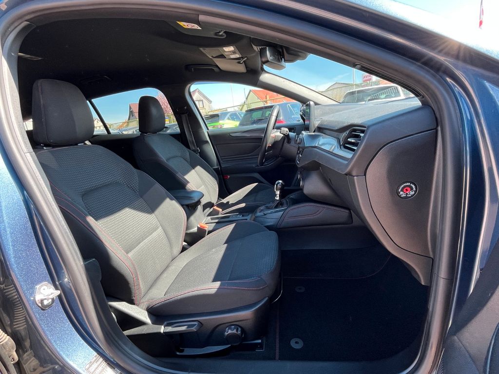 Airbag Beifahrerseite abschaltbar, Antischlupfregelung (ASR), Audio-Navigationssystem Ford mit AppLink, Außenspiegel elektr. anklappbar, Außenspiegel elektr. verstell- und heizbar, Blinkleuchte in Außenspiegel integriert, Body-Styling-Paket, Bord-/Verbrauchscomputer, Dachhimmel Stoff, dunkel, Dachreling schwarz, Dimmer Instrumentenbeleuchtung, Doppelendrohr Auspuffanlage, Elektr. Bremskraftverteilung (EBD), Fahrassistenz-System: Berganfahr-Assistent (Hill-Holder), Fahrassistenz-System: Notbrems-Assistent, Fahrassistenz-System: Post-Collision-System, Fahrassistenz-System: Pre-Collision-System, Fahrassistenz-System: Spurhalteassistent, Farbdisplay für Bordcomputer, Fensterheber elektrisch vorn + hinten mit Komfortschließung, FordPass Connect inkl. eCall, Gepäckraumabdeckung / Rollo, Innenraumfilter: Staub- und Pollenfilter, Intelligent Protection System (IPS), Intelligenter Geschwindigkeits-Begrenzer, Isofix-Aufnahmen für Kindersitz, Karosserie: 5-türig, Kopfstützen hinten mechan. verstellbar (3 Stück), Kopfstützen vorn 4-fach verstellbar, Lenkrad (Sport/Leder, ST), Lenksäule (Lenkrad) höhen-/längsverstellbar, LM-Felgen, Motor 1,5 Ltr. - 111 kW EcoBoost KAT (1496 ccm), My Key (2. Fahrzeugschlüssel programmierbar), Nebelscheinwerfer LED, Otto-Partikelfilter (OPF), Parkbremse elektrisch mit Auto-Hold-Funktion, Parkpilotsystem vorn und hinten, Pedale Aluminium, Reifendruck-Kontrollsystem, Reserverad als Notrad, Rücksitzlehne geteilt/klappbar (60:40), Schadstoffarm nach Abgasnorm Euro 6d-TEMP, Schalt-/Wählhebelgriff Aluminium, Schaltpunktanzeige, Scheinwerfer mit abgedunkelten Hintergrund, Scheinwerfer-Assistent mit Tag-/Nachtsensor, Sitz vorn links höhenverstellbar, Sonnenblende links mit Spiegel, Sonnenblende rechts mit Spiegel, Sport-Fahrwerk, Sportsitze vorn, Start/Stop-Anlage, Steckdose (12V-Anschluß) im Koffer-/Laderaum, Verglasung getönt, Warnanlage für Sicherheitsgurte hinten, Warnanlage für Sicherheitsgurte vorn, Zylinderabschaltung, Head-up-Display, Geschwindigkeitsbegrenzer mit vorausschauender Regelung