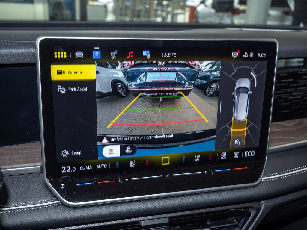 - Fussgaenger-Schutzmassnahmen erweitert, * VW Logo vorn / hinten, * Leiste zwischen Scheinwerfer / Rueckleuchten beleuchtet mit Animation, * Automatische Fahrlichtschaltung mit Leaving Home / Coming-Home-Lichtfunktion, * Stossfaenger Elegance, * Seitenscheiben und Heckscheibe Verbundglas, * hinten abgedunkelt, * 45 W) vorn, * Infotainment-System mit Touchscreen-Farbdisplay 12, * Fahrassistenz-System: Memoryfunktion fuer Park Assist, * Innenausstattung: Designelemente in Chrom-Optik, * Innenausstattung: Dekor-Set Elegance, * durchleuchtet, * Mittelkonsole Standard, * Dachhimmel Stoff Ceramique (hell grau), * pneumatisch verstellbar, * sensorgesteuert oeffnend, * Armaturenbrett und Tuerverkleidung, * Dekoreinlagen durchleuchtet), * Diebstahl-Warnanlage (Innenraumueberwachung, * Back-up-Horn, * Abschleppschutz), * Warndreieck und Warnweste(n), * 5x18 (Napoli * schwarz glanzgedreht), * Hybrid 200 kW Plug-in (Motor 1, * 5 Ltr. - 130 kW TSI e hybrid), * drahtlos heizbar, * infrarot-reflektierend, * geraeuschdaemmend