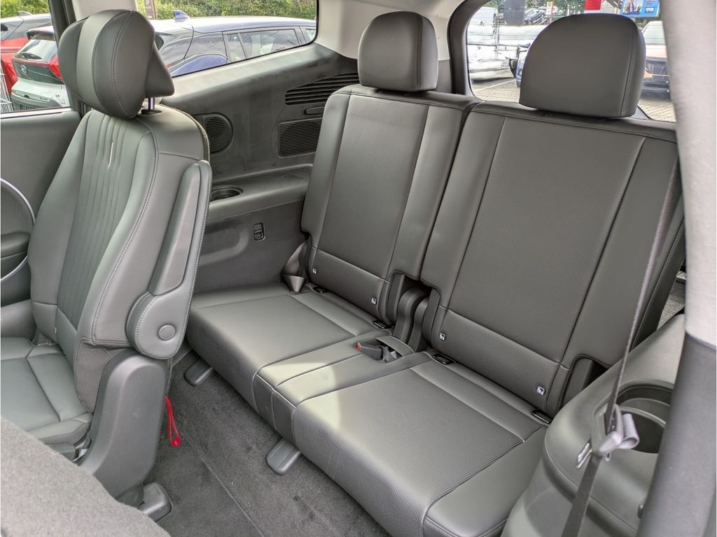 - Weiteres: Lenkrad mit beleuchteten LED-Pixeln, Shift-by-Wire, Lenkrad elektrisch höhen- und längsverstellbar, Fensterheber elektrisch inkl. Abwärts-/Aufwärtsautomatik mit Einklemmschutz für vordere und hintere Sitzplätze, LED-Innenraumbeleuchtung vorne, LED-Innenraumbeleuchtung (2. und 3. Sitzreihe), Ambientebeleuchtung mehrfarbig, LED-Gepäckraumbeleuchtung, LED-Gepäckraumbeleuchtung (Frunk), Mittelkonsole verschiebbar bis in die 2. Sitzreihe (Universal Console 2.0), UV-C Sterilisationsfach, Gepäckraumabdeckung flexibel, Lenkrad in Leder, Dachhimmel in Wildleder-Optik, Sonnenblende in Wildleder-Optik, Digitales Cockpit mit 12,3-Zoll-Display, Head-up-Display, 12V-Steckdose im Gepäckraum, Smartphone-Ablage mit kabelloser Ladefunktion, 230V-Steckdose, USB-Ladeanschlüsse vorne (100W), USB-Ladeanschlüsse hinten (100W), USB-Ladeanschlüsse 3. Sitzreihe (100W), Vehicle-to-Load Adapter (V2L), Smart-Key-System mit Start-/Stopp-Knopf, Digitaler Fahrzeugschlüssel 2.0 (UWB), Front-, Seiten- und Vorhangairbags + Seitenairbags für die 2. Sitzreihe, Knieairbag für den Fahrer, Center Airbag zwischen Fahrer und Beifahrer, Antiblockiersystem (ABS), Elektr. Stabilitätskontrolle (ESC), Rücksitzlehne (3. Sitzreihe) elektrisch umklappbar, Sitzpolsterung in Nappaleder, Fahrersitz, Beifahrersitz und zweite Sitzreihe (äußere Sitzplätze) mit Sitzheizung, Fahrersitz, Beifahrersitz und zweite Sitzreihe (äußere Sitzplätze) mit Sitzbelüftung, Rücksitzlehne mit Fernentriegelung zum Umklappen aus dem Gepäckraum, Beifahrersitz mit Relax-Funktion, Fahrersitz mit Relax-Funktion, Batterieheizsystem, Wärmepumpe, Aufmerksamkeitsassistent, kamerabasiert (ICC), Geschwindigkeitsregelanlage (adaptiv, navigationsbasiert und mit Stopp-Funktion) (NSCC), Totwinkelassistent (BCA) und Querverkehrsassistent (RCCA), Spurhalteassistent (LKA), Intelligente Verkehrszeichenerkennung (ISLA), Autonomer Notbremsassistent 2.0 (FCA 2.0), Spurfolgeassistent (LFA), Autobahnassistent 2.0 (HDA 2.0) inkl. Handerkennung, Insassenalarm, sensorbasiert (ROA), Monitoranzeige für den Totwinkelassistent (BVM), Wärmeschutzverglasung (Frontscheibe und Seitenscheiben vorne), Privacy-Verglasung (dunkel getönte Scheiben ab B-Säule), Akustik-Verbundglas (Seitenscheiben), Akustik-Verbundglas (Frontscheibe), Außenspiegel mit LED-Blinker integriert, Außenspiegel beheizbar und elektrisch einstellbar, Außenspiegel elektrisch anklappbar, Dachreling, Türgriffe elektrisch ein- und ausfahrbar, 9,0 J x 21-Zoll-Leichtmetallfelgen mit 285/45 R 21 Bereifung, Reifen-Reparatur-Kit, aktive Geräuschunterdrückung, Navigationssystem mit 12,3-Zoll-Touchscreen, Hyundai Bluelink, Android Auto™ und Apple CarPlay™ (kabellos), BOSE Soundsystem, Lautsprecher 1. Sitzreihe, Lautsprecher 2. Sitzreihe, Lautsprecher 3. Sitzreihe, Hochtöner vorne und hinten, Center-Lautsprecher, Subwoofer und Verstärker, USB-Anschluss, Over-the-Air Updates (Fahrzeugsystem), Bluetooth-Freisprecheinrichtung