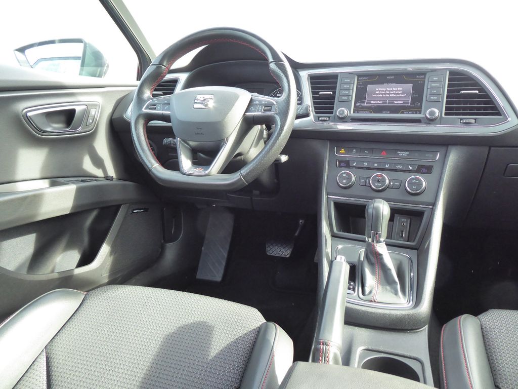3. Bremsleuchte, Ablage-Paket, Ablagetasche an Vordersitzlehnen, Airbag Beifahrerseite abschaltbar, Airbag Fahrer-/Beifahrerseite, Antriebs-Schlupfregelung (ASR), Außenspiegel elektr. verstell-, heiz- und anklappbar, beide, Außenspiegel und Türgriffe außen in Wagenfarbe, Außentemperaturanzeige, Blinkleuchten LED in Außenspiegel integriert, Bordcomputer, Bremsassistent, Dachreling silber, Elektron. Differentialsperre (EDS), Fahrassistenz-System: Berganfahr-Assistent (Hill-Holder), Fahrassistenz-System: Berganfahr-Assistent und Elektron. Differentialsperre, Fahrassistenz-System: Fahrprofilauswahl (SEAT Drive Profile), Fensterheber elektrisch hinten, Gepäckraumabdeckung / Rollo, Handschuhfach beleuchtet, Heckleuchten LED, Innenausstattung: Chrom-Applikationen, Isofix-Aufnahmen für Kindersitz, Karosserie: 5-türig, Klimaanlage Climatronic 2-Zonen, Knieairbag Fahrerseite, Kofferraumbeleuchtung, Kopf-Airbag-System, Kopfstützen hinten (3-fach), Kopfstützen vorn verstellbar, Laderaumboden variabel und herausnehmbar, Lendenwirbelstütze Sitz vorn links, verstellbar, Lendenwirbelstütze Sitz vorn rechts, verstellbar, Lenkrad (Sport/Leder), Mittelarmlehne hinten, Motor 1,4 Ltr. - 110 kW 16V TSI ACT, Reifenkontroll-Anzeige, Rücksitzlehne geteilt/klappbar (1/3-2/3), Rücksitzlehnen umklappbar mit Fernentriegelung im Kofferraum, Schadstoffarm nach Abgasnorm Euro 6, Schalt-/Wählhebelgriff Leder, SEAT Media-System Touch Colour, Seitenairbag, Seitenscheiben hinten und Heckscheibe abgedunkelt, Sitz vorn links höhenverstellbar, Sitz vorn rechts höhenverstellbar, Sonnenblende links mit Spiegel (beleuchtet), Sonnenblende rechts mit Spiegel (beleuchtet), Sport-Fahrwerk FR / Cupra, Sportsitze vorn, Sprachsteuerungs-System, Start/Stop-Anlage, Stau-/Ablagefach unter Sitze vorn, Steckdose (12V-Anschluß) im Koffer-/Laderaum, Steckdose (12V-Anschluß) vorn, Stoßfänger lackiert, Wärmeschutzverglasung, Seitenscheiben hinten und Heckscheibe abgedunkelt