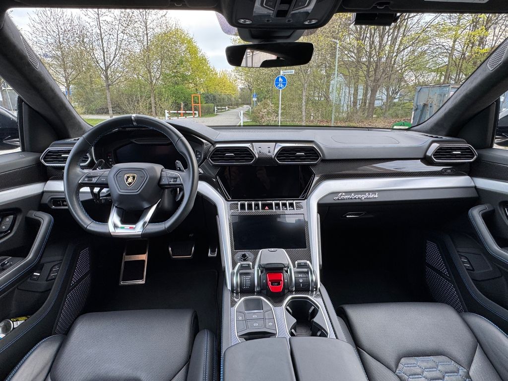 -Anhängerkupplung (AHK) ExterieurAußenfarbe: -Blu Astraeus -Satin Schwarz Matt Folierung -Auspuffendrohre in Schwarz -Schwarz glänzende Fensterrahmen und Seitengitter -Keramikbremsanlage (CCB) Interieur: -Multifunktionslenkrad (perforiertes Leder),beheizt -Ziernähte Lenkrad – Blu Amon -Ziernähte – Blu Amon -Sitzheizung vorne und hinten (separat steuerbar) -Lamborghini Wappen gestickt in Kopfstützen -Sicherheitsgurte – Nero Ade -Fußmatten vorne und hinten mit Lederkante und Doppelnaht