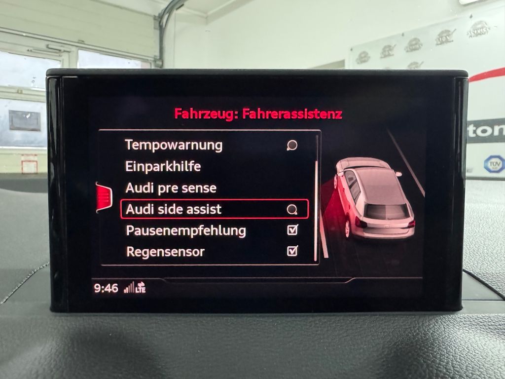 Adaptives Bremslicht, Airbag Beifahrerseite abschaltbar, Airbag Fahrer-/Beifahrerseite, Antriebs-Schlupfregelung (ASR), AUX-IN-Anschluss, Außenspiegel asphärisch, links, Außenspiegel konvex, rechts, Außenspiegel Wagenfarbe, Blinkleuchten LED in Außenspiegel integriert, Bremsassistent, Bremssättel dunkelgrau lackiert, Einstiegsleisten mit Aluminiumeinlage, Elektron. Differentialsperre (EDS), Fahrassistenz-System: Bremsassistent (Audi pre sense front), Fensterheber elektrisch vorn + hinten, Frontscheibe mit Bandfilter oben, Fußmatten Velours, Gepäckraumboden doppelt und herausnehmbar, Geschwindigkeits-Begrenzeranlage, Heckscheibe heizbar, Heckscheibenwischer, Innenausstattung: Dekoreinlagen Diamantlack silbergrau, Isofix-Aufnahmen für Kindersitz, Karosserie: 4-türig, Kindersicherung, manuell, Kombiinstrument elektronisch, Kopf-Airbag-System (Sideguard), Kopfstützen hinten (3-fach), Leuchtweitenregelung, Mittelkonsole, Modellbezeichnung mit neuer Leistungskennzeichnung, Motor 2,0 Ltr. - 140 kW 16V TFSI, Nichtraucher-Paket, Otto-Partikelfilter (OPF), Parkbremse elektro-mechanisch, Progressivlenkung, Radstand 2601 mm, Reifen-Reparaturkit, Reifendruck-Kontrollsystem, Schadstoffarm nach Abgasnorm Euro 6d-TEMP, Schalt-/Wählhebelgriff Leder, Seitenairbag vorn, Sideblade in Wagenfarbe, Start/Stop-Anlage, Steckdose (12V-Anschluß) in Mittelkonsole vorn, Stoßfänger Ausführung: Basis, Wärmeschutzverglasung grün getönt, App-Connect Wireless (Apple CarPlay, Android Auto, MirrorLink)