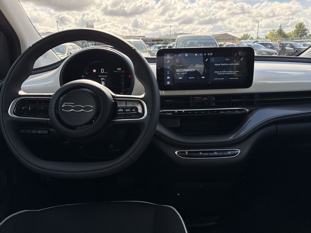 - Weiteres: Antriebs-Schlupfregelung (ASR), Sitzbezug / Polsterung: Stoff, Lenkrad mit Multifunktion, Heckleuchten LED, Ambiente-Beleuchtung, Infotainment-System: UConnect 5 mit Navigationssystem, DAB+ und Bluetooth-Freisprecheinrichtung (Touchscreen 10,25 Zoll), Armaturenbrett farbig, Elektromotor 87 kW (cont. 43 kW), Seitenschutzleisten schwarz glänzend, Beifahrerairbag abschaltbar, Einschaltautomatik für Fahrlicht / Lichtsensor, Fahrmodusschalter, Geschwindigkeits-Regelanlage (Tempomat), Heckscheibe heizbar, Kopfstützen hinten, Regen-/Lichtsensor, Smartphone Schnittstelle (Apple CarPlay & Android Auto), Wärmeschutzverglasung, Stahlfelgen 6x15, Mittelarmlehne vorn, Außenspiegel elektr. verstell- und heizbar, beide, Sitzheizung vorn, Rückfahrkamera mit 360° Surround View, Tagfahrlicht LED, USB-Schnittstelle, Sitzverstellung vorn rechts (4-fach), Airbag Fahrer-/Beifahrerseite, Elektron. Stabilitäts-Programm (ESP / ESC), Kopf-Airbag-System vorn, Lenksäule (Lenkrad) höhenverstellbar, Notrufsystem (eCall), Seitenairbag vorn, Kopf-Airbag-System vorn und hinten, Rücksitz geteilt / klappbar, Fensterheber elektr. vorn mit Komfortschaltung, Sonderlackierung Uni, Antriebsart: Frontantrieb, Aufmerksamkeits-Assistent, Außenspiegel Wagenfarbe, Autom. Begleitfunktion der Beleuchtung (Follow me home), Autonomer Notbrems-Assistent (AEB), Bremsassistent, Keyless-Entry & Go, Klimaautomatik, Komfort-Paket, Ladekabel mit Typ 2-Stecker (Mode 3), Mobile Online Dienste UConnect Live, One Pedal Drive (elektronisches Gaspedal), Parkbremse elektrisch, Radioempfang digital (DAB+), Rückfahrkamera Park View, Scheibenwischer beheizbar, Sitzhöhenverstellung Fahrersitz, Spurhalteassistent, Totwinkel-Assistent, Verkehrszeichenerkennung