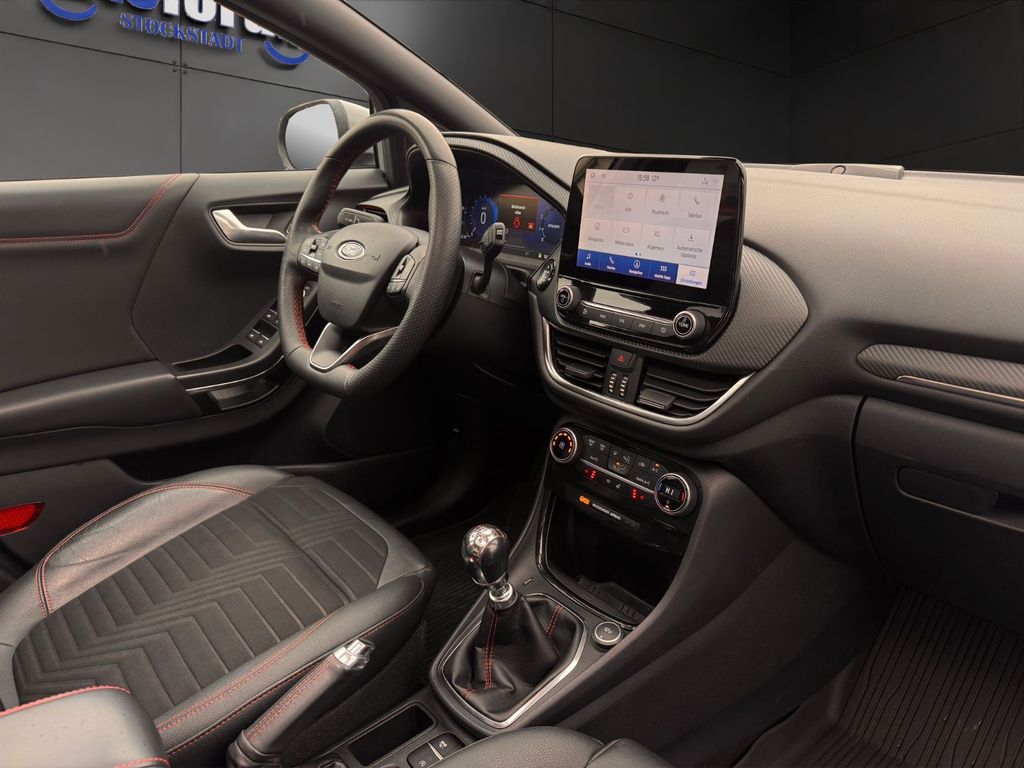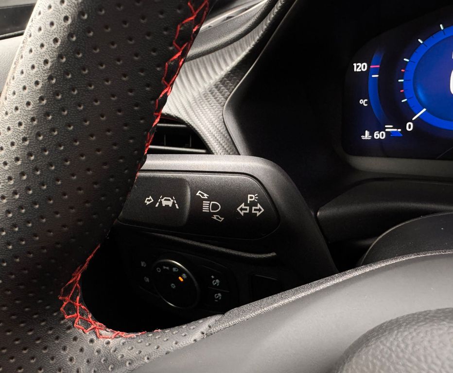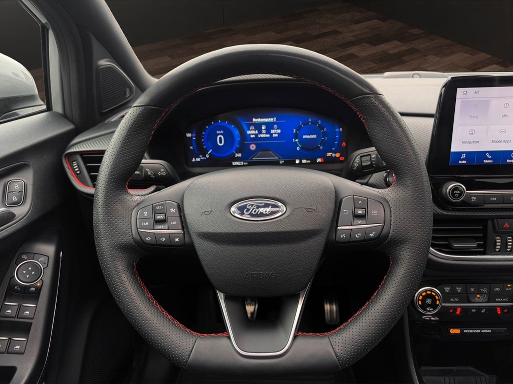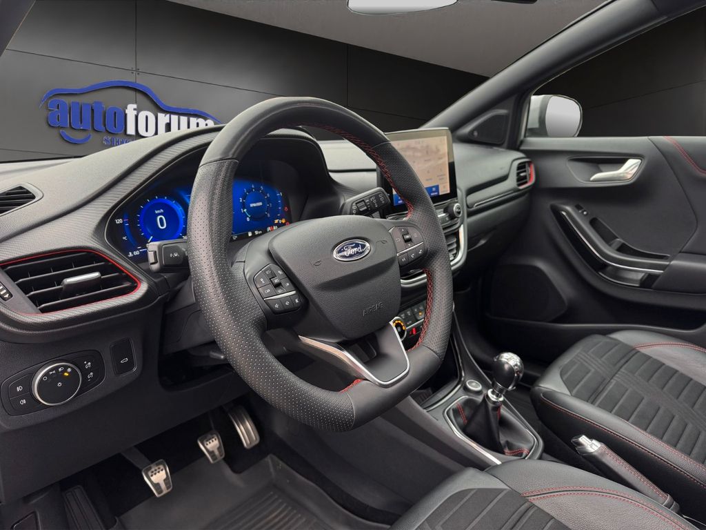 Ambiente-Beleuchtung vorn (LED), Antischlupfregelung (ASR), Audio-Navigationssystem Ford mit AppLink, Außenspiegel elektr. anklappbar, Außenspiegel elektr. verstell- und heizbar, Body-Styling-Paket, Dachhimmel Stoff, dunkel, Eco-Anzeige für verbrauchsoptimiertes Fahren (EcoCoach), Einparkhilfe hinten, Fahrassistenz-System: Berganfahr-Assistent (Hill-Holder), Fahrassistenz-System: Falschfahrer-Warnfunktion, Fahrassistenz-System: Fernlichtassistent (Scheinwerfer mit Abblendautomatik), Fahrassistenz-System: Notbrems-Assistent, Fahrassistenz-System: Post-Collision-System, Fahrassistenz-System: Pre-Collision-System, Fahrassistenz-System: Spurhalteassistent mit Müdigkeitserkennungs-Sensor, Fahrassistenz-System: Verkehrsschildassistent, Farbdisplay für Bordcomputer, Fensterheber elektrisch vorn + hinten mit Komfortschließung, FordPass Connect inkl. eCall, Getriebe 6-Gang - Typ: 6MX65, Heckleuchten LED, Induktionsladeschale für mobile Endgeräte, Innenraumfilter: Staub- und Pollenfilter, Intelligent Protection System (IPS), Intelligenter Geschwindigkeits-Begrenzer, Isofix-Aufnahmen für Kindersitz, Kombiinstrument Digitalanzeige 12,3 Zoll, Komfort-Paket, Kopfstützen hinten mechan. verstellbar (3 Stück), Lackierung Blazer-Blau uni, Laderaumboden variabel (Ford Megabox), Lendenwirbelstütze vorn, Lenkrad (Sport/Leder, ST), Lenksäule (Lenkrad) höhen-/längsverstellbar, LM-Felgen, Mild-Hybrid 114 kW (Motor 1,0 Ltr. - 114 kW EcoBoost), My Key (2. Fahrzeugschlüssel programmierbar), Nebelscheinwerfer LED, Otto-Partikelfilter (OPF), Pedale Aluminium, Reifen-Reparaturkit, Reifendruck-Kontrollsystem, Rücksitzlehne geteilt/klappbar (60:40), Schadstoffarm nach Abgasnorm Euro 6d-TEMP, Sitzbezug / Polsterung: Stoff/Leder, Sitze vorn höhenverstellbar, Sport-Fahrwerk, Sportsitze vorn