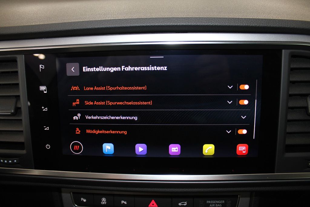 Ablagetasche an Vordersitzlehnen, Airbag Beifahrerseite abschaltbar, Airbag Fahrer-/Beifahrerseite, Antriebs-Schlupfregelung (ASR), Antriebsart: Allradantrieb, Außenspiegel elektr. verstell-, heiz- und anklappbar mit Spiegelabsenkung, Außenspiegel grau, Blinkleuchten LED in Außenspiegel integriert, Bordcomputer, Brillenfach, Doppeltonhorn, Einstiegsleisten beleuchtet, Elektron. Querdifferentialsperre (XDS), Fahrassistenz-System: Berganfahr-Assistent (Hill-Holder), Fahrassistenz-System: Fahrprofilauswahl (SEAT Drive Profile), Fahrassistenz-System: Müdigkeitserkennung, Fahrassistenz-System: Umfeldbeobachtungssystem (Front assist) mit City-Notbremsfunktion, Fensterheber elektrisch vorn + hinten mit Komfortschaltung, Gepäckraumabdeckung / Rollo, Handschuhfach beleuchtet, Heckspoiler Wagenfarbe, Innenraumlicht-Paket LED, Isofix-Aufnahmen für Kindersitz, Klimaanlage Climatronic 2-Zonen, Knieairbag Fahrerseite, Kofferraumbeleuchtung, Kopf-Airbag-System, Lendenwirbelstütze Sitz vorn links, verstellbar, Lendenwirbelstütze Sitz vorn rechts, verstellbar, Mittelarmlehne hinten, Mittelkonsole vorn mit Mittelarmlehne, Becherhalter, Ablagebox und Luftdüsen hinten, Modellpflege, Motor 2,0 Ltr. - 140 kW TSI, Nebelscheinwerfer LED mit Abbiegelicht, Notrufsystem, Otto-Partikelfilter (OPF), Parkbremse elektrisch mit Auto-Hold-Funktion, Pedale Aluminium-Design, Radstand 2630 mm, Reifenkontroll-Anzeige, Rücksitzlehne geteilt/klappbar (1/3-2/3), Schadstoffarm nach Abgasnorm Euro 6d, Schalt-/Wählhebelgriff Leder, Schließ-/Startsystem Kessy, Seitenairbag, Sitz vorn links höhenverstellbar, Sitz vorn rechts höhenverstellbar, Sonnenblende links mit Spiegel (beleuchtet), Sonnenblende rechts mit Spiegel (beleuchtet), Start/Stop-Anlage, Stau-/Ablagefach unter Sitz vorn links, Steckdose (12V-Anschluß) vorn, Stoßfänger FR-Design, Verzurrösen Koffer-/Laderaum, Wärmeschutzverglasung