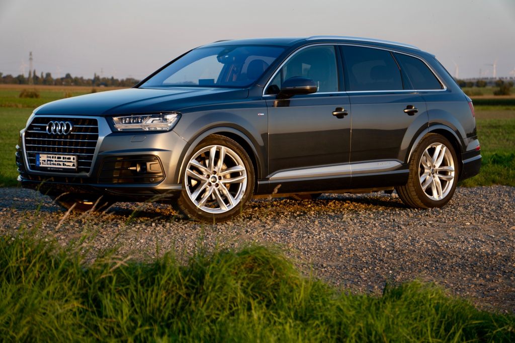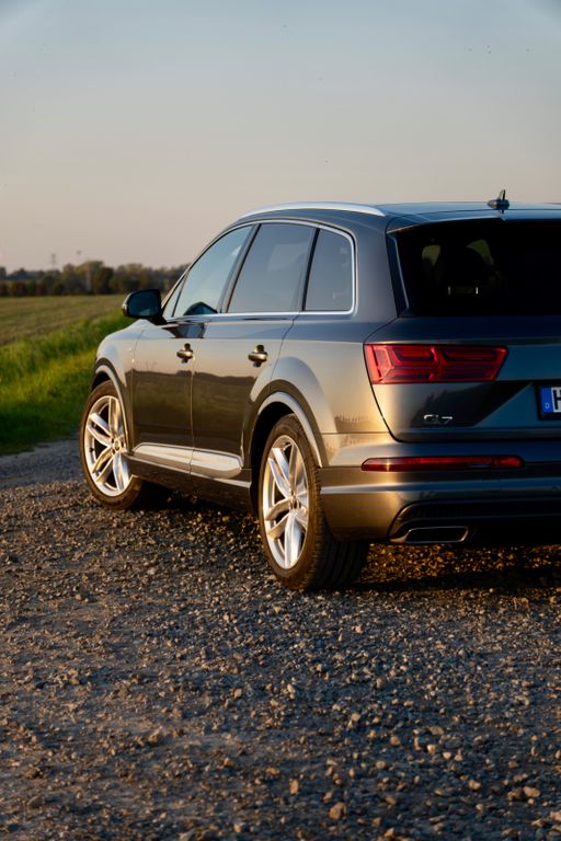 Anhängerkupplung (Kugelkopf elektrisch schwenkbar); Verglasung hinten abgedunkelt; S line Exterieurpaket; Panoramadach vorn elektrisch, hinten fest; Perleffekt-Lackierung Daytona-Grau; Aluminium-Gussräder Audi Sport im 5-Doppelspeichen-Design, Größe "21"; S line Sportpaket, Akustikglas Türscheiben seitlich; Ambiente-Beleuchtung; Allradlenkung; Frontscheibe Klimakomfort / Akustikglas/ Doppelverglasung.