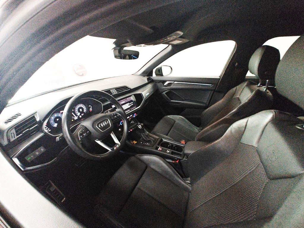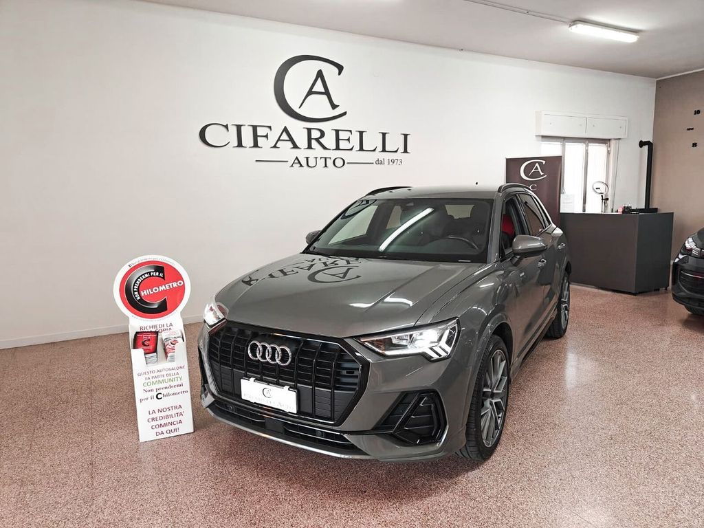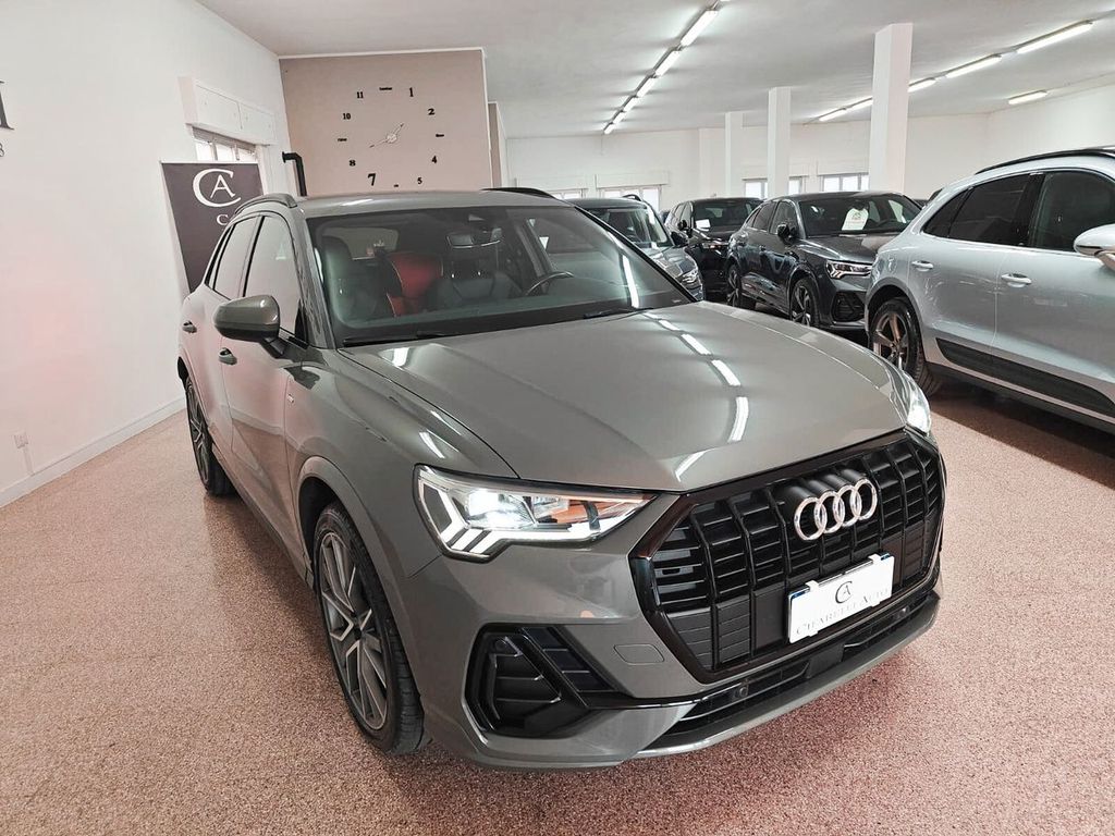 L'annuncio riguarda un'Audi Q3 35 TDI, un SUV con carrozzeria metallica di colore grigio e interni in pelle nera, con un totale di 5 porte e 5 posti a sedere. L'auto è alimentata a diesel, dotata di un motore da 1968 cm³, con 4 cilindri, 150 CV di potenza (110 kW) e cambio automatico a 7 marce. La trazione è anteriore.Il veicolo ha percorso 32.700 km ed è stato immatricolato il 17 maggio 2021. È presente un solo proprietario precedente. Tra le caratteristiche di sicurezza e comfort si evidenziano ABS, vari airbag, controllo elettronico della corsia, controllo trazione, ESP, cruise control, sensori di parcheggio anteriori e posteriori, telecamera per parcheggio assistito, sistema di avviso di distanza, riconoscimento dei segnali stradali, riconoscimento della stanchezza, blind spot monitor, luci full-LED, fendinebbia, e molto altro.