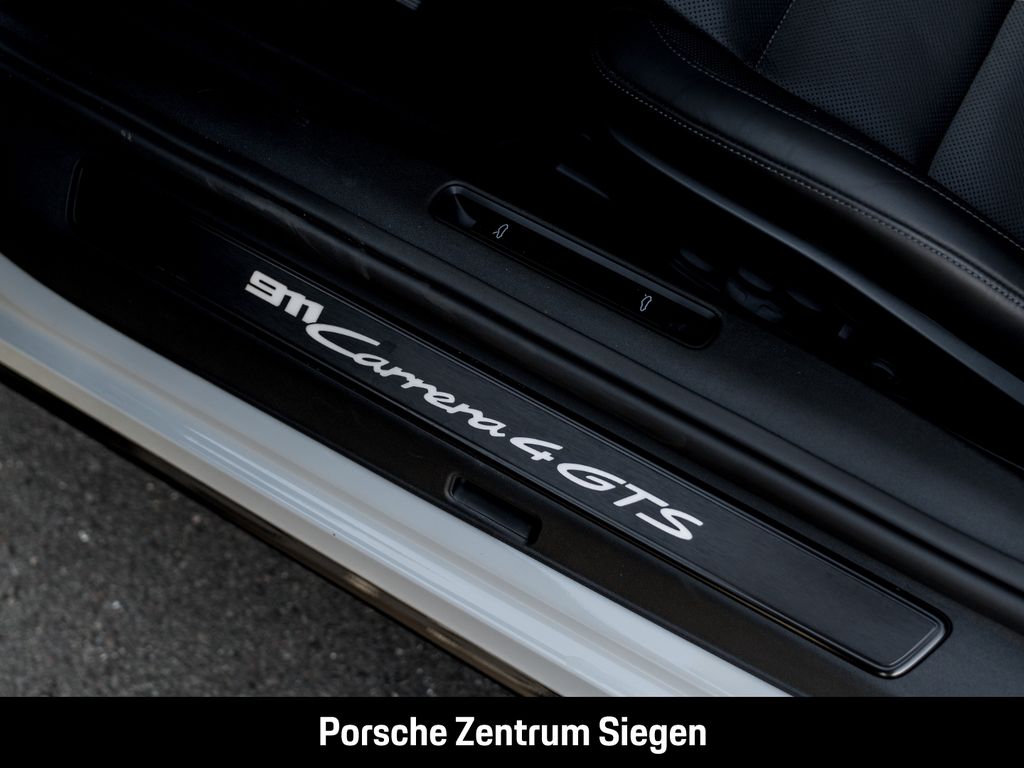 - Weiteres: Herzlich Willkommen in Ihrem Porsche Zentrum Siegen. . Vielen Dank für Ihr Interesse an unserem Fahrzeug. . Als exklusiver Porsche Financial Services Partner unterbreiten wir Ihnen gerne ein performantes Finanzierungs- und Leasingangebot. . Gemeinsam mit Ihnen erstellen wir gerne eine Offerte für die Inzahlungnahme Ihres aktuellen Fahrzeugs, um Ihren Traum eines neuen Porsche zu verwirklichen. . Kontaktieren Sie uns unter +49 271 2355-911 oder info( at )porsche-siegen.de, um mehr zu erfahren oder einen Termin für eine individuelle Beratung zu vereinbaren. . Irrtümer, Änderungen, sowie Zwischenverkauf vorbehalten., (2D5) Exterieur-Paket lackiert in Schwarz (hochglanz), (6XV) Elektrisch anklappbare Außenspiegel inkl. Spiegelumfeldbeleuchtung, (6FQ) Außenspiegel-Oberschalen Carbon inklusive Unterschalen und Spiegelfüße lackiert in Schwarz (hochglanz), (UD1) LED-Türprojektoren „PORSCHE“ Schriftzug, (6F0) Entfall GTS Schriftzug auf Türen vorn links und rechts, (0NA) Entfall Modellbezeichnung, (2UH) Liftsystem Vorderachse, (1N3) Servolenkung Plus, (0N5) Hinterachslenkung, (1LR) Bremssättel lackiert in Schwarz (hochglanz), (1G8) Reifendichtmittel mit elektrischem Kompressor, (2V4) Ionisator, (Q1J) Adaptive Sportsitze Plus (18-Wege, elektrisch) mit Fahrer-Memory-Paket, (QQ2) Licht-Design-Paket, (4A3) Sitzheizung vorn, (4D3) Sitzbelüftung vorn, (7V3) Zifferblatt Drehzahlmesser weiß, (UP3) Zifferblatt Sport Chrono Stoppuhr weiß, (3HB) Lederpaket 930, (3J7) Porsche Wappen auf Kopfstützen, (2C8) Verkleidung Lenksäule Leder (in Verbindung mit Memory-Paket), (ALB) Cupholderblende Leder, (2TG) Sportsitz Plus Rückenlehne Leder mit Dekorelement Leder, (5XK) Sonnenblenden Race-Tex., (2PF) GT-Sportlenkrad Leder mit Lenkradblende Carbon matt inkl. Lenkradheizung, (7F4) PDK Wählhebel Aluminium, (P19) Pedalerie und Fußstütze Aluminium, (VT9) Türeinstiegsblenden Aluminium gebürstet in Schwarz, beleuchtet, (9VJ) Burmester® High-End Surround Sound-System, (8JU) LED-Matrix Hauptscheinwerfer abgedunkelt inkl. Porsche Dynamic Light System Plus (PDLS Plus), (8VH) Exclusive Design Heckleuchten, (P14) Automatisch abblendende Innen-/Außenspiegel mit integriertem Regensensor, (4GP) Windschutzscheibe mit Graukeil, (KA6) ParkAssistent inkl. Surround View, (7Y1) Spurwechselassistent, (3V1) Porsche InnoDrive inklusive Abstandsregeltempostat, (VC2) HomeLink®, (4F2) Komfortzugang