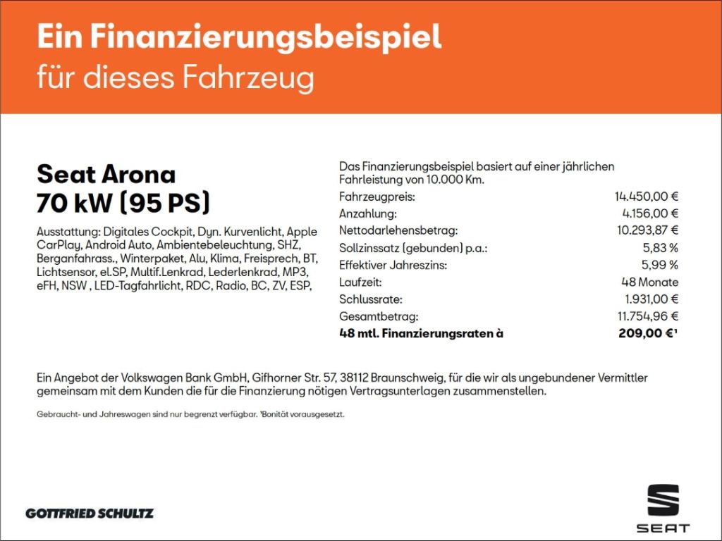 - Weiteres: Sonstiges, Digitales Kombiinstrument, Klimaanlage, Sitzheizung, SEAT Media System Touch Colour, Apple CarPlay, Audiosystem, automatische Fahrlichtschaltung, Berganfahrassistent, Dachreling, Fensterheber elektr., Freisprecheinrichtung, LED-Tagfahrlicht, Leichtmetallfelgen, Lichtsensor, MirrorLink, Multifunktions-Lederlenkrad, Nebelscheinwerfer und Abbiegelicht, Start-Stopp-System, Tagfahrlicht, Touchscreen-Farbdisplay, Winterpaket, Ambientelicht, Außenspiegel elektr. einstell-/beheizbar, Außentemperaturanzeige, Beifahrerairbagdeaktivierung, Bordcomputer, Bremsassistent, Chrompaket, Deaktivierung für Beifahrer-Airbag, Doppelairbag, ebener Ladeboden hinten, Euro 6d-TEMP, Fensterheber elektr., geteilt umklappbare Rücksitzlehne, Handbremshebelgriff in Leder, Höheneinstellbare Vordersitze, Höhen- und Längeneinstellbares Lenkrad, Isofix Kindersitzaufnahmen, Kopfairbagsystem, Lenksäule verstellbar, Multifunktionsanzeige, Multikollisionsbremse, Otto-Partikelfilter, Pannen-Set, Reifendruck-Überwachung, Scheibenwaschdüsen beheizbar, Scheinwerferreinigungsanlage, Seiten- und Kopfairbags, Zentralverriegelung mit Fernbedienung, 4-Türen, 5-Gang-Schaltgetriebe, 5-Türen, ABS, ASR, ESP, Euro 6, Frontantrieb, HU+AU neu, Scheckheftgepflegt, Servolenkung, Sitzbezüge in Stoff, uvm., Wegfahrsperre