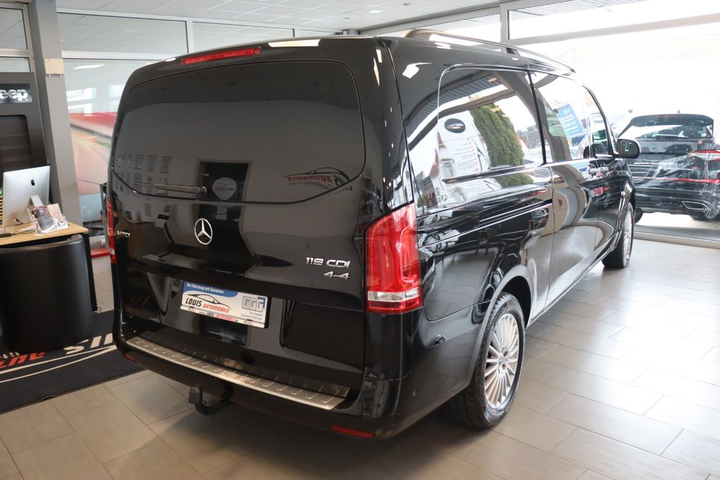 Dieser gepflegte Mercedes-Benz Vito aus dem Jahr 2022 bietet höchsten Komfort und Sicherheit für bis zu 8 Personen. Mit nur einem Vorbesitzer und lückenloser Servicehistorie präsentiert sich der Van in elegantem Schwarz-Metallic mit schwarzer Lederausstattung. Der 190 PS starke Dieselmotor mit Allradantrieb und Automatikgetriebe sorgt für souveräne Fahrleistungen bei gleichzeitiger Effizienz (Euro 6). Die umfangreiche Ausstattung umfasst beidseitige Schiebetüren, LED-Scheinwerfer mit adaptivem Kurvenlicht und Fernlichtassistent sowie ein modernes Navigationssystem mit Touchscreen, Apple CarPlay und Android Auto. Für maximale Sicherheit sorgen zahlreiche Assistenzsysteme wie Spurhalteassistent, Totwinkelwarner, Verkehrszeichenerkennung und Kollisionsvermeidung. Die Automatik-Klimaanlage, beheizbare Sitze und getönte Scheiben garantieren angenehmes Reisen.- Allradantrieb mit Automatikgetriebe und 190 PS Dieselmotor