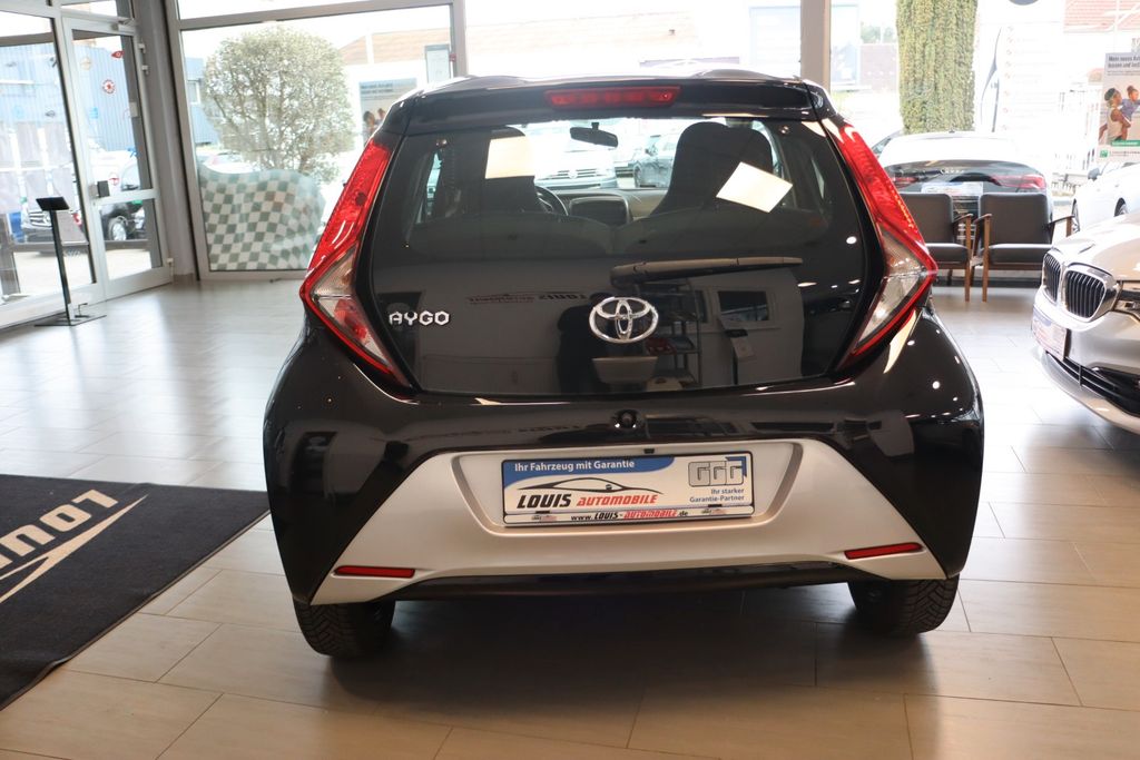 Entdecken Sie diesen gepflegten Toyota Aygo, ein kompakter Stadtflitzer mit automatischem Getriebe. Der 3-Zylinder Benzinmotor mit 72 PS und 998 ccm Hubraum bietet eine sparsame und umweltfreundliche Mobilität (Euro 6, grüne Umweltplakette). Erstmals zugelassen in 2021, präsentiert sich dieser Kleinwagen in elegantem Schwarz-Metallic mit schwarzem Stoffinterieur. Die Ausstattung überzeugt mit zahlreichen Komfort- und Sicherheitsmerkmalen: LED-Scheinwerfer mit adaptivem Kurvenlicht, Navigationssystem, Apple CarPlay, Bluetooth-Freisprecheinrichtung und DAB-Radio. Die manuelle Klimaanlage sorgt für angenehme Temperaturen. Sicherheit wird großgeschrieben mit Front-, Seiten- und weiteren Airbags, ABS, ESP und Berganfahrhilfe. Der Aygo verfügt über ein scheckheftgepflegtes Wartungsbuch und hatte nur zwei Vorbesitzer. Mit seinem Frontantrieb, der Rückfahrkamera und dem geringen Gewicht von 985 kg ist er ideal für den StadtverkehrFinanzierung und Inzahlungnahme möglich mit bis zu 36 Monaten Garantie.