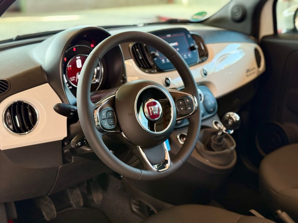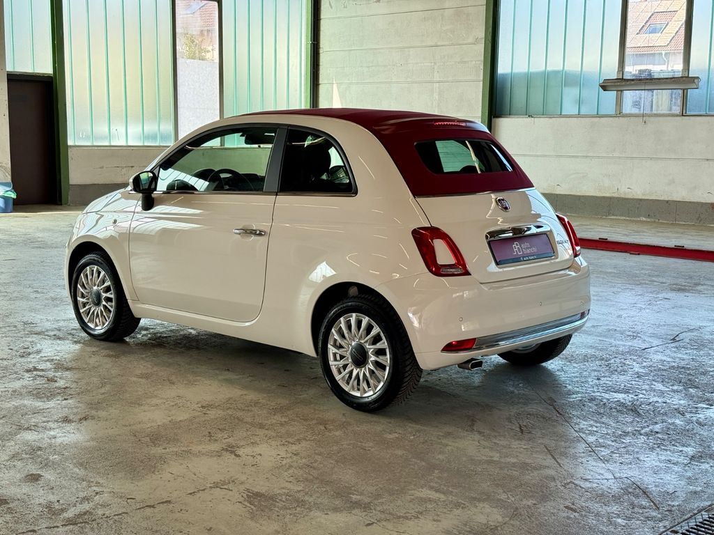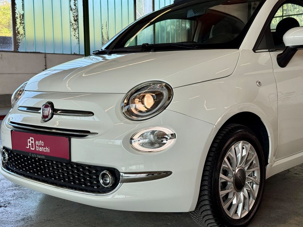 Fiat 500C Dolcevita Mild‑Hybrid mit bordeaux-rotem Stoffverdeck, Klimaautomatik, Apple CarPlay und nur ca. 4.800 km Laufleistung.Das Fahrzeug war zunächst als Fiat‑Werksfahrzeug zugelassen und befand sich anschließend im seriösen Privatbesitz einer älteren Dame – entsprechend gepflegt, behutsam bewegt und in einem frischen Gesamtzustand.