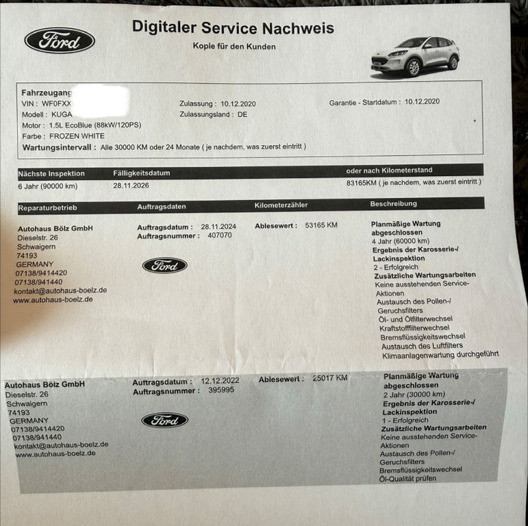 Gepflegter Ford Kuga aus 1. Hand mit ca. 59.000 km und Automatik. Scheckheftgepflegt, letzter Service 11/2024, zuverlässig und sofort einsatzbereit.Gute Ausstattung mit u. a. Einparkhilfe, Spurhalte- und Notbremsassistent sowie Infotainment mit Bluetooth.