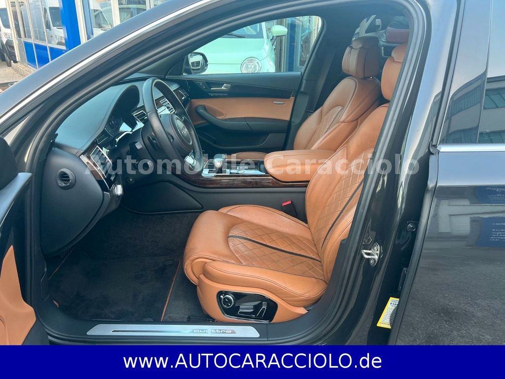 Adaptives Bremslicht, Airbag Fahrer-/Beifahrerseite, Ambiente-Beleuchtung, Antriebs-Schlupfregelung (ASR), Audi Drive Select, Außenspiegel asphärisch, links, Außenspiegel asphärisch, rechts, Außenspiegel elektr. verstell-, heiz- und anklappbar, mit Abblendautomatik und Bordsteinautomatik, Außenspiegel Wagenfarbe, Blinkleuchten LED in Außenspiegel integriert, Bremsanlage mit Rekuperationssystem, Bremsassistent, Diebstahlsicherung für Räder (Felgenschlösser), Einparkhilfe vorn und hinten, akustisch und optisch mit selektiver Anzeige (APS Plus), Einstiegsleisten mit Aluminiumeinlage, Elektron. Differentialsperre (EDS), Fahrassistenz-System: Anfahr-Assistent (hold assist), Fahrassistenz-System: Insassen-Schutzsystem (Audi pre sense basic), Fahrer-Informations-System (FIS) mit Farbdisplay, Fahrwerk (adaptive air suspension), Fondsitzanlage (3 Sitzplätze), Heckklappenöffnung automatisch, Heckleuchten LED, Innenausstattung: Aluminium-Optik, Innenausstattung: Dekoreinlagen Nussbaumwurzel dunkelbraun, Innenausstattung: Dekoreinlagen unten hochglänzend, schwarz, Innenspiegel mit Abblendautomatik, Isofix-Aufnahmen für Kindersitz, Karosserie: 4-türig, Komfort-Klimaautomatik 2-Zonen, Kopf-Airbag-System (Sideguard), Lendenwirbelstützen vorn, elektr. verstellbar, Motor 4,2 Ltr. - 283 kW V8 32V TDI, Multi-Media-Interface MMI, Multi-Media-Interface MMI Basic Plus / MMI Radio Plus, Multi-Media-Interface MMI Navigation Plus, Parkbremse elektro-mechanisch, Reifenkontroll-Anzeige, Schadstoffarm nach Abgasnorm Euro 6, Schalt-/Wählhebelgriff Leder, Seitenairbag vorn und hinten, Servoschliessung für Kofferraumdeckel, Sitz vorn links höhenverstellbar, Sitz vorn rechts höhenverstellbar, Sitzbezug / Polsterung: Leder Valcona, Sitzheizung vorn, Sportdifferential, Start/Stop-Anlage, Wärmeschutzverglasung grün getönt, Ambiente-Beleuchtung, Innenspiegel automatisch abblendend, Sitzheizung vorn.