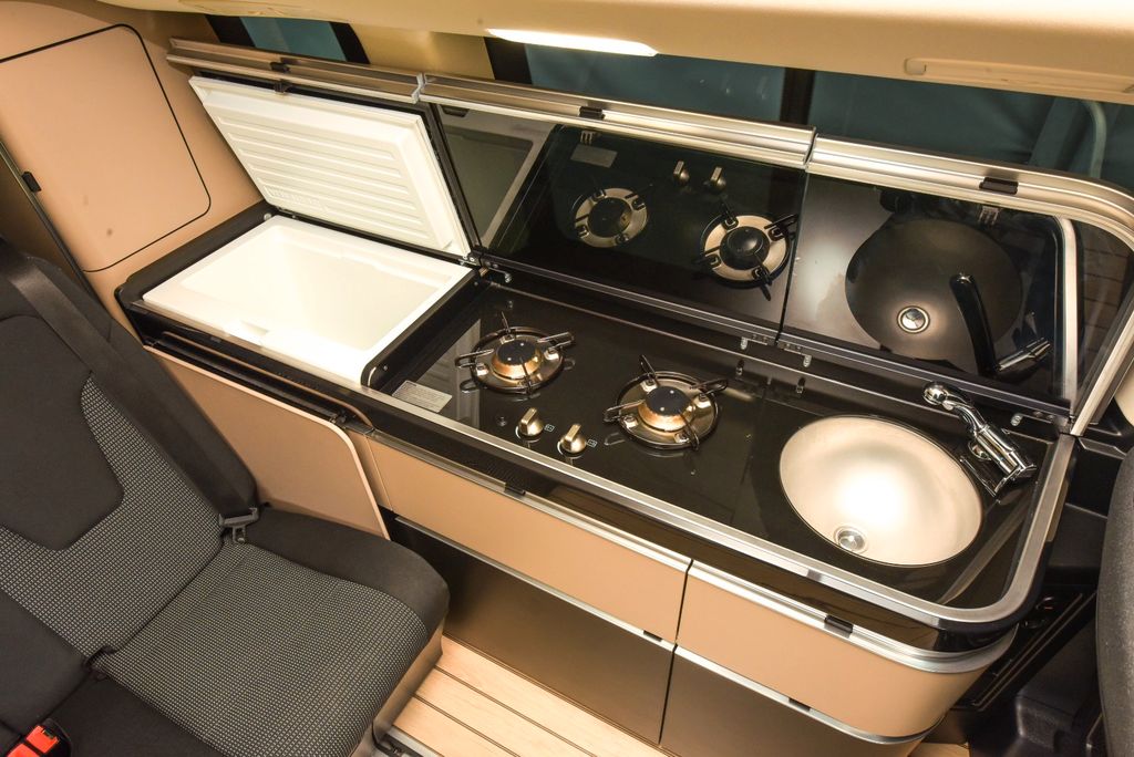 Für wiederum großes Komfortkino sorgt das neue Schnittstellenmodul Advanced Control (MBAC), welches Mercedes speziell für Wohnmobile als Unterfunktion des MBUX-Systems entwickelt hat. Auf dem großen Infotainmentdisplay finden sich unter dem entsprechenden Menüpunkt alle wichtigen Camping-Funktionen und -Informationen gebündelt. So kann man sich auf dem Display den Wasservorrat anzeigen lassen, die Standheizung aktivieren, die Temperatur der Kühlbox regeln. „Advanced Control“ Das Menü lässt sich auch auf einem gekoppelten Smartphone spiegeln, über welches sich dann ebenfalls die Funktionen steuern lassen. Zum Beispiel die Lieblingsmusik wählen und den satten Sound des Audiosystems genießen .