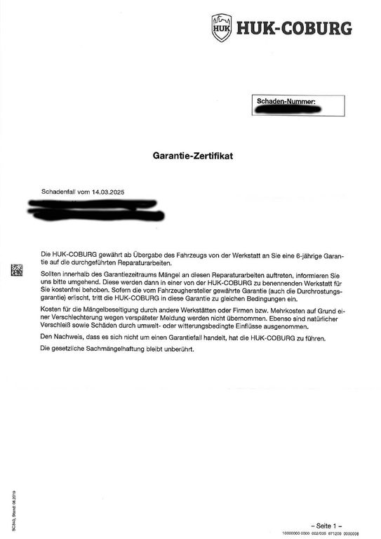 - Garantie auf die Reparaturen (HUK24, 6 Jahre)
