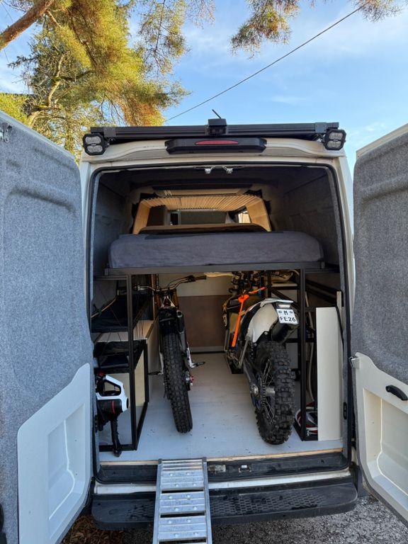 Der Camper wurde vom Architekten geplant und vom Schreiner ausgebaut und eignet sich ideal für Motorsport, Mtb, Reisen oder längere Aufenthalte.