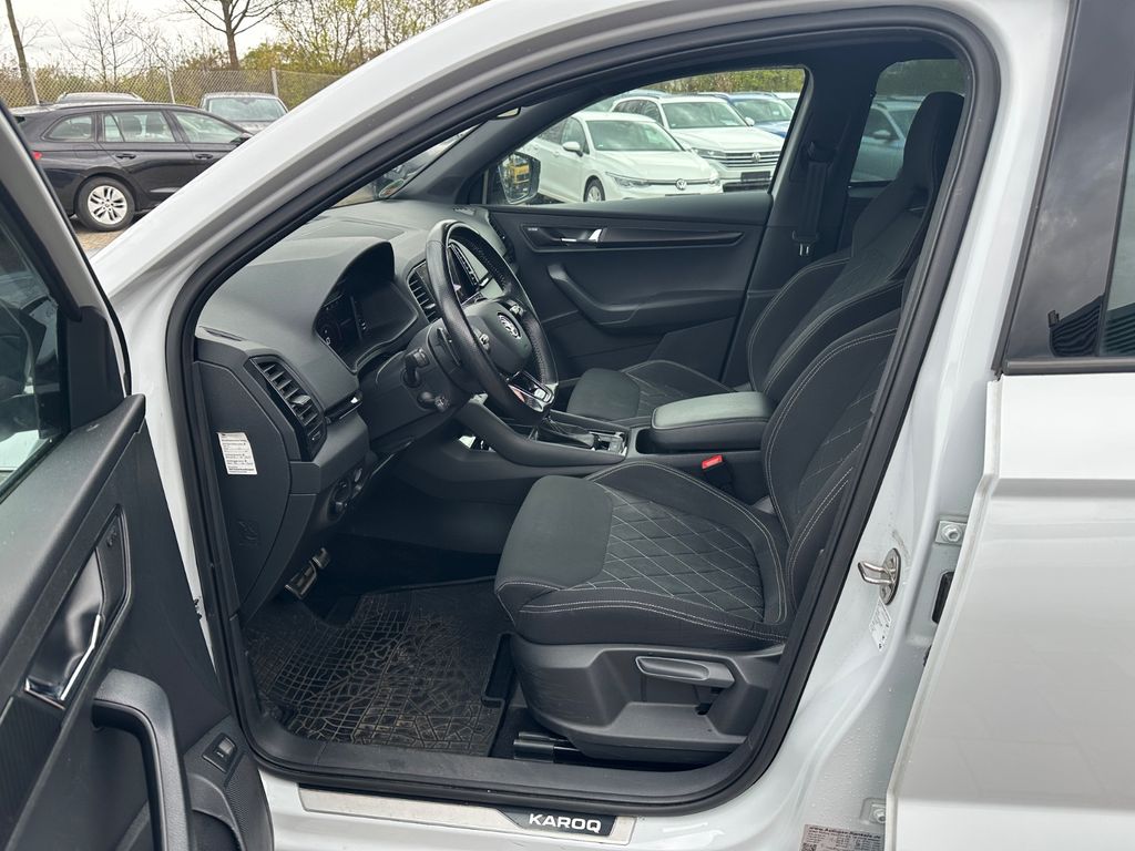 Dieser gepflegte SKODA Karoq aus dem Jahr 2020 überzeugt durch seine umfangreiche Ausstattung und Vielseitigkeit. Der 190 PS starke Allradantrieb bietet optimale Traktion bei allen Wetterbedingungen. Das Automatikgetriebe sorgt für komfortables Fahren, während die Kombination aus LED-Scheinwerfern und adaptivem Kurvenlicht für beste Sicht sorgt. Im Innenraum erwarten Sie ein digitales Cockpit, Navigationssystem und ein hochwertiges Soundsystem. Die Automatik-Klimaanlage, beheizbare Sitze vorne und hinten sowie das beheizte Lenkrad bieten höchsten Komfort. Dank umfangreicher Assistenzsysteme wie adaptivem Tempomat, Spurhalteassistent und Totwinkelwarner reisen Sie sicher und entspannt. Die elektrische Heckklappe und das schlüssellose Zugangssystem erleichtern den Alltag. Mit voller Servicehistorie und als Nichtraucherfahrzeug präsentiert sich dieser Karoq in einem sehr gepflegten Zustand.- Allradantrieb mit 190 PS und Automatikgetriebe