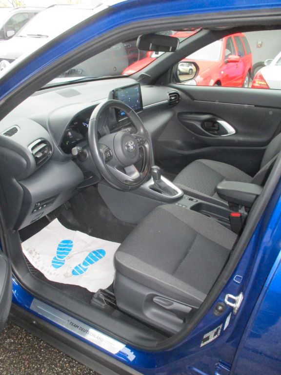 6 Lautsprecher, Airbag Fahrer-/Beifahrerseite, Aktive Kopfstützen vorn, Audiobedienung am Lenkrad, Audiosystem: Multimedia Toyota Touch, Autom. Begleitfunktion der Beleuchtung (Follow me home, FMH), Außenspiegel elektr. anklappbar, Außenspiegel elektr. verstell- und heizbar, Bremsassistent, Dachantenne, Elektr. Bremskraftverteilung, Fahrassistenz-System: Berganfahrkontrolle (HAC), Fahrassistenz-System: Eco-Anzeige für verbrauchsoptimiertes Fahren, Fahrassistenz-System: Fernlichtassistent (Abblendautomatik Fahrlicht, AHB), Fahrassistenz-System: Müdigkeitserkennungs-Sensor, Fahrassistenz-System: Pre-Collision-System (PCS), Fahrassistenz-System: Sicherheitssystem Toyota Connect mit automatischem Notruf (eCall), Fahrassistenz-System: Spurhalteassistent (LDA), Fahrassistenz-System: Verkehrszeichenerkennung (RSA), Fensterheber elektrisch vorn + hinten, Heckleuchten LED, Heckspoiler, Hybrid 85 kW (Motor 1,5 Ltr. - 68 kW), Innenraumfilter: Staub- und Pollenfilter mit Aktivkohlefilter, Isofix-Kindersitz-System, Karosserie: 5-türig, Kindersicherung elektr. betätigt, Klimaautomatik, Kopf-Airbag-System, Kopfstützen hinten, Lenksäule (Lenkrad) verstellbar, LM-Felgen, Nebelscheinwerfer LED, Park-Assistent mit Rückfahrkamera, Parkbremse elektrisch (EPB), Radstand 2560 mm, Reifen-Reparaturkit, Reifendruck-Kontrollsystem, Rücksitz geteilt, Schadstoffarm nach Abgasnorm Euro 6d, Schalt-/Wählhebelgriff Leder, Seitenairbag vorn, Seitenscheiben hinten und Heckscheibe dunkel getönt (Privacy Glass), Service-System: MyT-Connected Services, Sitz vorn links höhenverstellbar, Sitz vorn rechts höhenverstellbar, Sitzbezug / Polsterung: Stoff, Smartphone-Integration x-connect (Apple CarPlay und Android Auto), Steckdose (12V-Anschluß) in Mittelkonsole, Stoßfänger Wagenfarbe, Türgriffe außen Wagenfarbe, Verglasung hinten abgedunkelt, Warnanlage für Sicherheitsgurte hinten, Warnanlage für Sicherheitsgurte vorn
