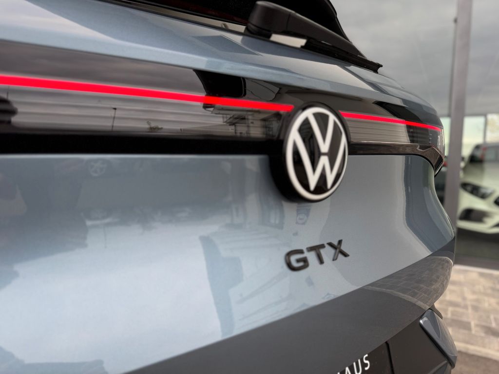 Airbag Fahrer-/Beifahrerseite, Beifahrerairbag abschaltbar, Akustischer Fußgängerschutz, Außensound (e-sound), Ambiente-Beleuchtung (30 Farben), Antennen-Diversity, App-Connect inkl. App-Connect Wireless (Apple CarPlay, Android Auto), Armlehnen für Fahrer- und Beifahrersitz, Audiosystem Ready 2 Discover (inkl. Streaming & Internet, Touchscreen, Bluetooth), Ausstattung GTX, Außenspiegel asphärisch, links, Außenspiegel elektr. verstell-, heiz- und anklappbar, Außenspiegel konvex, rechts, Außenspiegel mit Umfeldleuchte und Projektionsfunktion, Außenspiegel und Türgriffe außen in Wagenfarbe, Dach in Kontrastfarbe, Dachreling, Diebstahlsicherung für Räder (Felgenschlösser), Elektromotor 220 kW (cont. 77 kW, Dual-Elektromotor), Fahrassistenz-System: Abbiegebremsfunktion und Ausweichunterstützung, Fahrassistenz-System: Dynamische Fernlichtregulierung (Dynamic Light Assist), Fahrassistenz-System: Fahrprofilauswahl, Fahrassistenz-System: Müdigkeitserkennung, Fahrassistenz-System: Spurhalteassistent (Lane Assist), Fahrassistenz-System: Umfeldbeobachtungssystem (Front assist) mit City-Notbremsfunktion, Fahrassistenz-System: Verkehrszeichenerkennung, Geschwindigkeits-Begrenzeranlage in Verbindung mit Onlinedienste, Getriebe für Elektrofahrzeug, Getränkehalter hinten, Heckleuchten LED in 3D-Optik, Blinkleuchten dynamisch, Heckscheibenwischer, HV-Batterie 82 kWh brutto / 77 kWh netto, Infotainment-Paket, Innenausstattung: Bedienelemente und Einfassung Instrumente schwarz, Innenraumfilter: Aktiv Kombifilter, Innenspiegel mit Abblendautomatik, Isofix-Aufnahmen für Kindersitz an Beifahrersitz und Rücksitz (inkl. i-Size-Kindersitze), Karosserie: 5-türig, Kopfstützen hinten (3-fach), Ladekabel mit Typ 2-Stecker (Mode 3, 16 A), Ladeleistung HV-Batterie 11 kW (Wechselstrom AC), Lautsprecher (7, vorn und hinten), LM-Felgen, Matrix-LED-Scheinwerfer (IQ.Light) inkl. autom. Fahrlichtschaltung, Schlechtwetter-Licht und Begrüßungsfunktion, Maximale DC-Ladeleistung (Gleichstrom) abhängig von der Anriebsbatterie, Notrufsystem, Pedale Edelstahl, Radioempfang digital (DAB+), Radstand 2769 mm, Reifenkontroll-Anzeige, Rücksitzlehne geteilt mit Mittelarmlehne und Durchladeeinrichtung, Schnellladevorrichtung (CCS-Ladedose), Seitenairbag vorn mit Center-Airbag und Kopf-Airbag-Einheit, Service-System: Intelligente Fahrzeugvernetzung (Car2X), Service-System: Online Update, Servolenkung elektro-mechanisch und geschwindigkeitsabhängig, Sicherheitsgurte vorn mit Gurtstraffer und Endbeschlagstraffer, höhenverstellbar, Sitzbezug / Polsterung: Stoff GTX, Sitze vorn höhenverstellbar, Sonnenblenden mit Spiegel (beleuchtet), Sprachsteuerungs-System, Türverkleidung Kunstleder, Unterfahrschutz Triebwerk (Motor und Getriebe), Verbandkasten und Warndreieck, Warnanlage für Sicherheitsgurte vorn und hinten, Fernlichtregulierung Light Assist, Sitze: Top-Sportsitze vorn, Innenspiegel automatisch abblendend