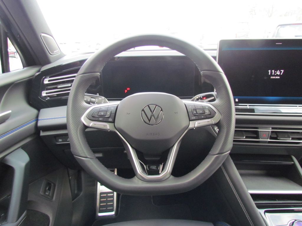 Multifunktions-Sportlenkrad in Leder, beheizbar, mit Schaltwippen; Dekor-Set "R-Line", durchleuchtet; Bordcomputer; Digital Cockpit Pro, mehrfarbig, verschiedene Info-Profile wählbar; Dachhimmel schwarz; Einstiegsleisten vorn in Aluminium; Verbandtasche, Warndreieck und Warnweste; Klimaautomatik "Air Care Climatronic" mit Aktiv-Kombifilter, Bedienelementen hinten und 3-Zonen-Temperaturregelung
