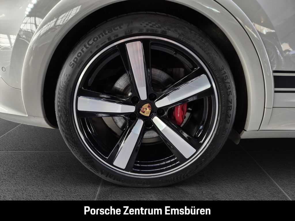 - Weiteres: (3S2) Dachreling Aluminium schwarz, (YMH) Seitlicher Dekorschriftzug PORSCHE schwarz, (6FQ) SportDesign Außenspiegel-Oberschale Carbon, (2D5) SportDesign Paket lackiert in Schwarz (hochglanz), (QJ4) Exterieur-Paket Schwarz (hochglanz), (UD1) LED-Türprojektoren PORSCHE Schriftzug, (0PC) Modellbezeichnung lackiert in Schwarz (hochglanz), (1D3) Elektrisch ausklappbare Anhängezugvorrichtung, (1BK) Adaptive Luftfederung mit Niveauregulierung und Höhenverstellung inklusive Porsche Active Suspension Management (PASM), (1P7) Porsche Dynamic Chassis Control (PDCC), (8LU) Sport Chrono Paket mit Porsche Design Subsecond Uhr, (0P9) Sportabgasanlage inklusive Sportendrohren dunkelbronze, (QZ7) Servolenkung Plus, (0N5) Hinterachslenkung inklusive Servolenkung Plus, (57Y) 22-Zoll Exclusive Design Sport Räder lackiert in Schwarz (hochglanz), (5ZF) Porsche Wappen auf Kopfstützen, (YZD) Ziernähte in abweichender Farbe - indischrot, (Q2J) Komfortsitze vorn (14-Wege, elektrisch) mit Memory-Paket, (2ZF) GT-Sportlenkrad mit Lenkradkranz in Race-Tex inklusive Lenkradheizung, (4A4) Sitzheizung vorn und hinten, (4D9) Massagefunktion vorn inkl. Sitzbelüftung vorne und hinten, (7TM) Interieur-Paket Leder in Interieurfarbe, (YDF) Interieur-Zusatzpaket Haltegriffe Leder - kreide, (PX2) Beifahrerdisplay, (9VJ) Burmester® 3D High-End Surround Sound-System, (9WU) Vorrüstung Porsche Rear Seat Entertainment, (YHX) Porsche Rear Seat Entertainment, (8JU) HD-Matrix LED-Hauptscheinwerfer abgedunkelt, (VW1) Privacy-Verglasung, (9R1) Nachtsichtassistent, (KS1) Head-Up Display, (VC2) HomeLink®, (7Y1) Spurwechselassistent, (4F2) Komfortzugang, (FT3) Surround View inklusive Aktive Einparkunterstützung, (QQ1) Ambientebeleuchtung, (9AE) 4-Zonen-Klimaautomatik, (3Y7) Sonnenrollos für Fondseitenfenster elektris* Int.KnNr: 2990r