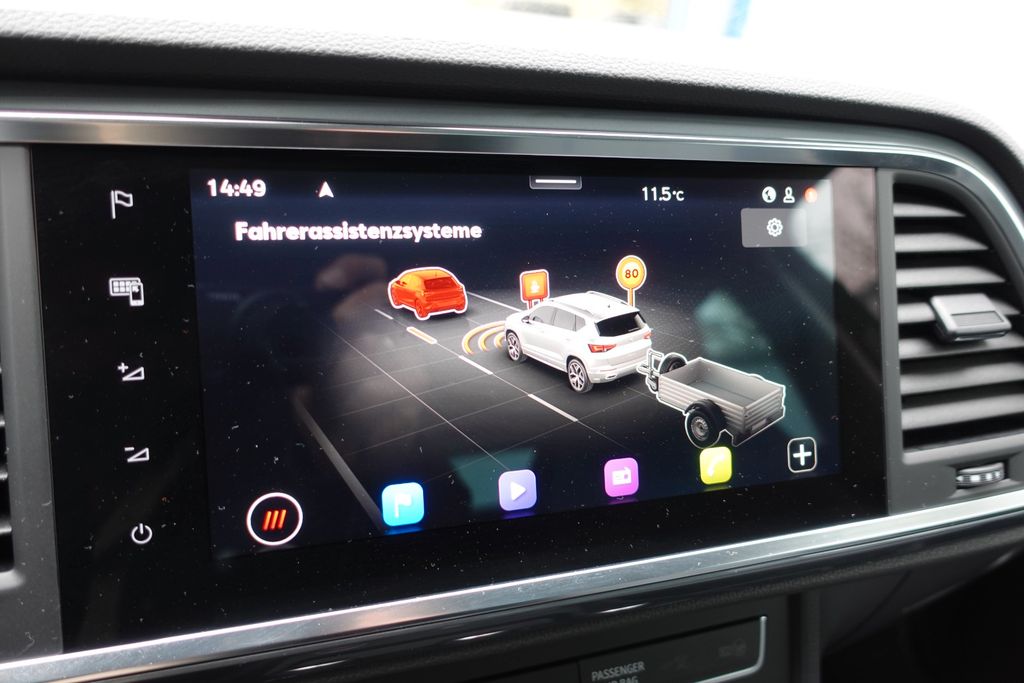 Sonderausstattung:Allwetter-/ Ganzjahresreifen, Anhängerkupplung (Kugelkopf mit elektr. Entriegelung, schwenkbar), Audio-Navigationssystem mit Touchscreen Farbbildschirm, Fahrassistenz-Paket M inkl. Abstandstempomat ACC, Fahrassistenz-System: Parklenkassistent mit Einparkhilfe vorn und hinten, Fzg. ohne Modell-Schriftzug, Laderaumboden variabel und herausnehmbar, Lenkrad heizbar (Leder) mit Multifunktion und Schaltfunktion, Metallic-Lackierung, Mobile Online Dienste Seat Connect Plus (3 Jahre ab EZ), Rückfahrkamera, Seitenscheiben hinten und Heckscheibe abgedunkelt