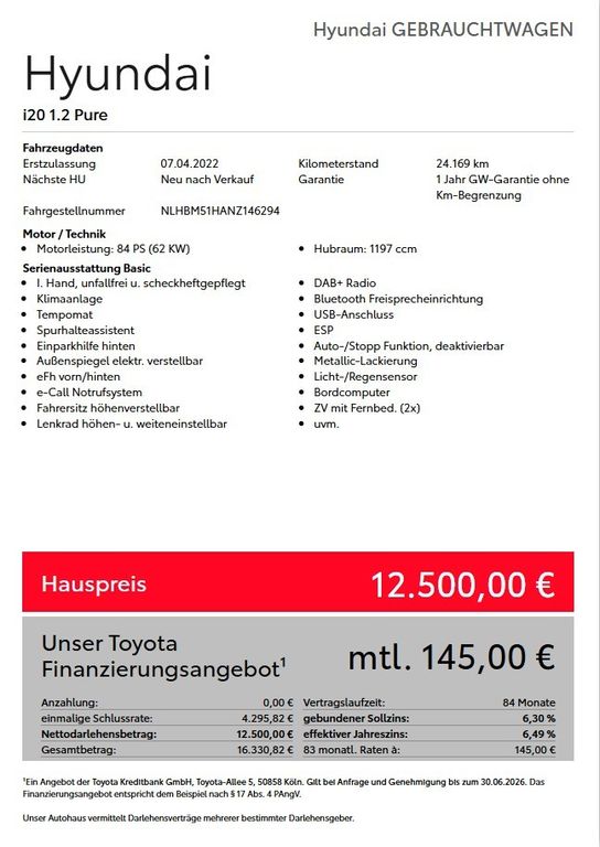 1 Jahr GW-Garantie ohne Km-Begrenzung(lt. Garantiebestimmungen)Weitere Ausstattung: