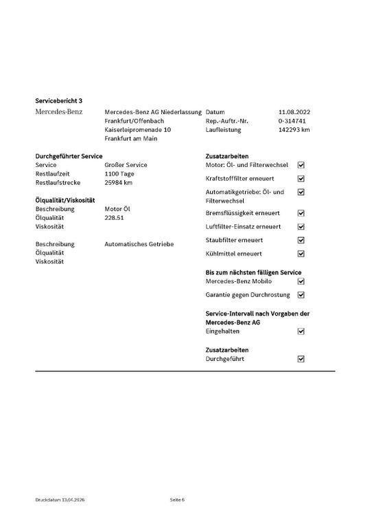 Letzter MB Service in 08/2025 bei 238TKM durchgeführt