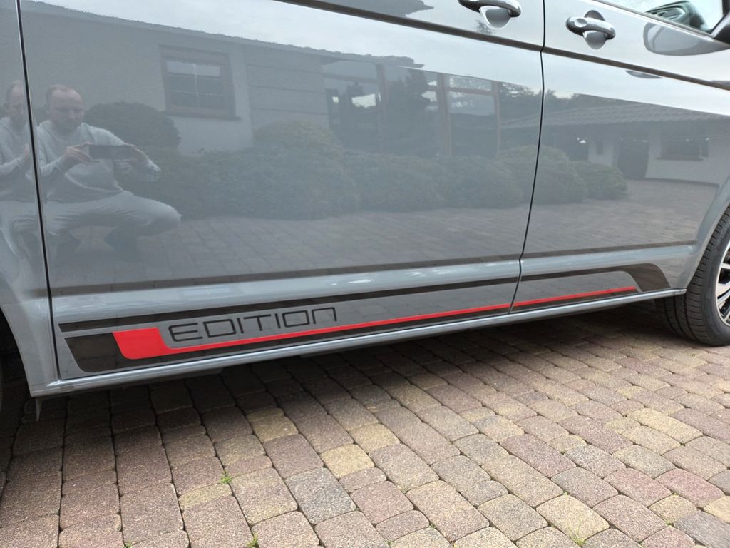 Sonderausstattung:Audio-Navigationssystem Discover Pro Streaming & Internet (Touchscreen, USB), Bordwerkzeug und Wagenheber, Deaktivierungsschalter für Antriebs-Schlupfregelung (ASR), Digital Cockpit (Instrumentenanzeige Digital), Fahrassistenz-Paket Plus, Fahrassistenz-System: Anhänger-Rangierassistent inkl. Einparkhilfe, Parklenkassistent, Flankenschutz und Rückfahrkamera, Gepäckraum-Abtrennung / Trennnetz, Klimaautomatik Climatronic (Fahrerhaus + Lade-/Fahrgastraum), Kraftstofftank: 80 Ltr., Lackierung: Uni-Lackierung / Dach Schwarz, Raucher-Paket, Schiebetüren Lade-/Fahrgastraum links/rechts, elektr. betätigt, Sitzbezug / Polsterung: ArtVelours / Kunstleder, Sitze im Fahrerhaus: Fahrersitz elektr. verstellbar (12-fach, mit Memory), Sitze im Lade-/FG-Raum: Kindersitze (2) integriert, 1. Sitzreihe, Sonnenschutzfolie für Verglasung Fahrgastraum, Steckdose 230V im Fahrerhaus, Winterbereifung zusätzlich (Kundenangabe erforderlich), Zuziehhilfe für Heckklappe