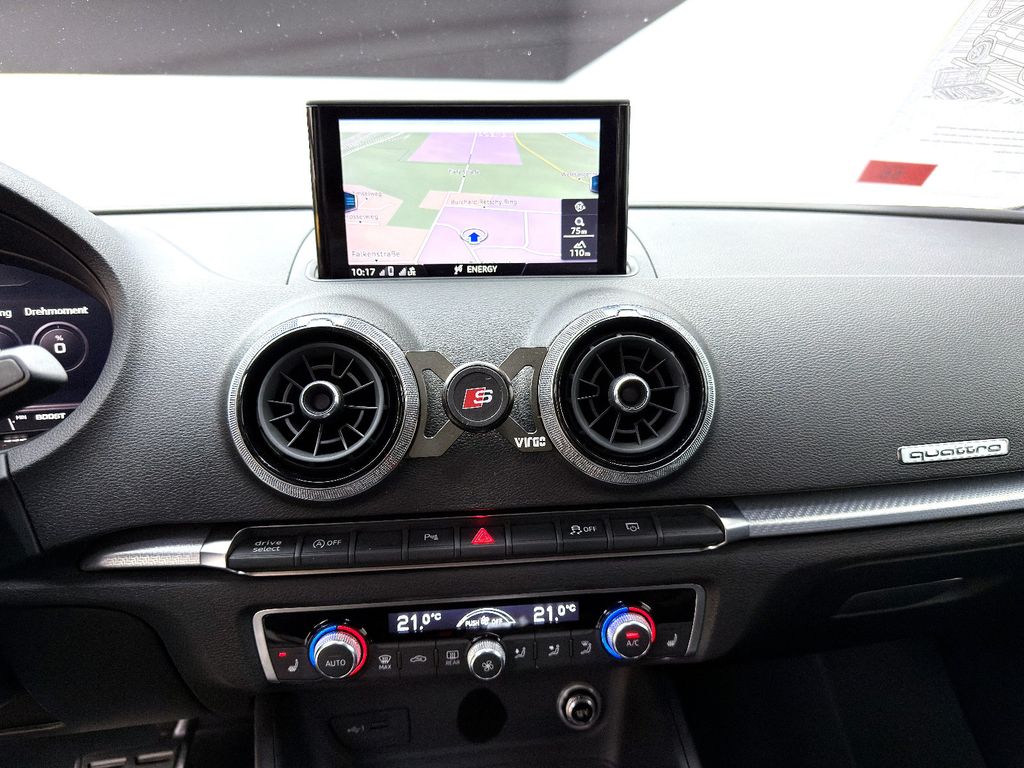 Ablage- und Gepäckraum-Paket, Adaptives Bremslicht, Airbag Fahrer-/Beifahrerseite, Antriebs-Schlupfregelung (ASR) mit EDS, Audi Drive Select, Bremsassistent, Dachhimmel Stoff, Dachkantenspoiler, Einparkhilfe vorn und hinten, akustisch und optisch mit selektiver Anzeige (APS Plus), Einstiegsleisten mit Aluminiumeinlage und Schriftzug, beleuchtet, Fahrassistenz-System: Bremsassistent (Folgekollision), Fahrer-Informations-System (FIS) mit Farbdisplay, Fußmatten Velours, Gepäckraumabdeckung / Rollo, Heckleuchten LED mit dynamischem Blinklicht, Innenausstattung: Aluminium-Optik, Isofix-Aufnahmen für Kindersitz, Karosserie: 4-türig, Kombiinstrument elektronisch, Komfort-Klimaautomatik 2-Zonen, Kopf-Airbag-System (Sideguard), Kotflügelverbreiterung, Lenkrad (Sport/Leder - 3-Speichen, unten abgeflacht) mit Multifunktion und Schaltfunktion, Licht-Paket, Motor 2,5 Ltr. - 294 kW 20V TFSI, Pedale und Fußstütze in Edelstahl, Progressivlenkung, Reifen-Reparaturkit, Reifenkontroll-Anzeige, RS-Frontstoßfänger Sport-Design, Rücksitzlehne geteilt/klappbar, Schadstoffarm nach Abgasnorm Euro 6, Schalt-/Wählhebelgriff Alcantara / Mikrofaser, Seitenairbag vorn, Start/Stop-Anlage, Stoßfänger Sport-Design (S-line), Stoßfänger Sport-Design mit Diffusoreinsatz hinten, Universal-Schnittstelle Bluetooth, Wärmeschutzverglasung grün getönt, App-Connect Wireless (Apple CarPlay, Android Auto, MirrorLink), Innenspiegel automatisch abblendend, Sitzheizung vorn