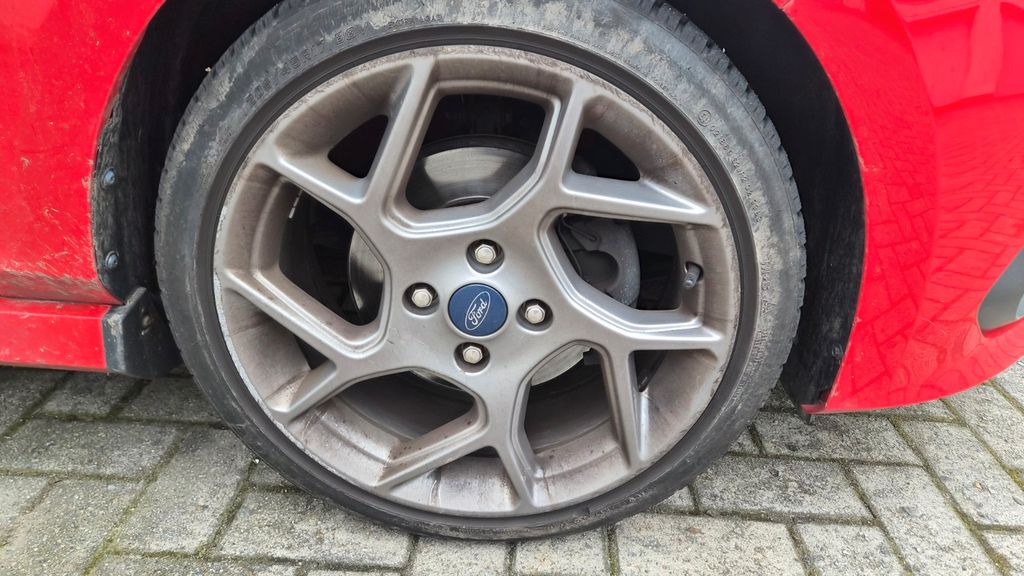 Der Wagen ist 8-fach bereift. Sowohl die Sommer- als auch die Winterreifen (gutes Profil) befinden sich auf originalen Ford ST Alufelgen inklusive funktionierender RDKS-Sensoren. Momentan sind noch Winterreifen montiert (Stand 13.04.2026).