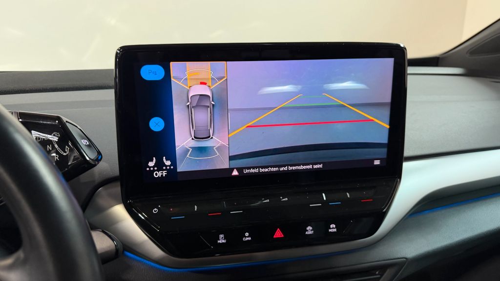 Airbag Fahrer-/Beifahrerseite, Beifahrerairbag abschaltbar, Akustischer Fußgängerschutz, Außensound (e-sound), Antennen-Diversity, App-Connect inkl. App-Connect Wireless (Apple CarPlay, Android Auto), Armlehnen für Fahrer- und Beifahrersitz, Ausstattung Basis, Außenspiegel asphärisch, links, Außenspiegel elektr. verstell-, heiz- und anklappbar, Außenspiegel konvex, rechts, Außenspiegel mit Umfeldleuchte und Projektionsfunktion, Elektromotor 150 kW (cont. 70 kW), Fahrassistenz-System: Abbiegebremsfunktion und Ausweichunterstützung, Fahrassistenz-System: Autom. Distanzregelung (ACC inkl. Stop&Go-Funktion), Fahrassistenz-System: Fahrprofilauswahl, Fahrassistenz-System: Müdigkeitserkennung, Fahrassistenz-System: Spurhalteassistent (Lane Assist), Fahrassistenz-System: Umfeldbeobachtungssystem (Front assist) mit City-Notbremsfunktion, Fahrassistenz-System: Verkehrszeichenerkennung, Getriebe für Elektrofahrzeug, Heckleuchten LED, Heckscheibenwischer, HV-Batterie 82 kWh brutto / 77 kWh netto, Innenausstattung: Bedienelemente und Einfassung Instrumente schwarz, Innenraumfilter: Aktiv Kombifilter, Innenspiegel mit Abblendautomatik, Isofix-Aufnahmen für Kindersitz an Beifahrersitz und Rücksitz (inkl. i-Size-Kindersitze), Karosserie: 5-türig, Kopfstützen hinten (3-fach), Ladekabel mit Typ 2-Stecker (Mode 3, 16 A), Ladeleistung HV-Batterie 11 kW (Wechselstrom AC), Lautsprecher (7, vorn und hinten), Maximale DC-Ladeleistung (Gleichstrom) abhängig von der Anriebsbatterie, Notrufsystem, Pedale Edelstahl, Performance Upgrade, Radioempfang digital (DAB+), Radstand 2771 mm, Reifenkontroll-Anzeige, Scheinwerfer LED inkl. Automatische Fahrlichtschaltung, Schnellladevorrichtung (CCS-Ladedose), Seitenairbag vorn mit Center-Airbag und Kopf-Airbag-Einheit, Service-System: Intelligente Fahrzeugvernetzung (Car2X), Service-System: Online Update, Servolenkung elektro-mechanisch und geschwindigkeitsabhängig, Sicherheitsgurte vorn mit Gurtstraffer und Endbeschlagstraffer, höhenverstellbar, Sonnenblenden mit Spiegel (beleuchtet), Sprachsteuerungs-System, Türverkleidung Kunstleder, Verbandkasten und Warndreieck, Warnanlage für Sicherheitsgurte vorn und hinten, Wärmeschutzverglasung grün getönt (seitlich / hinten), Sitze: Top-Sportsitze vorn, Innenspiegel automatisch abblendend