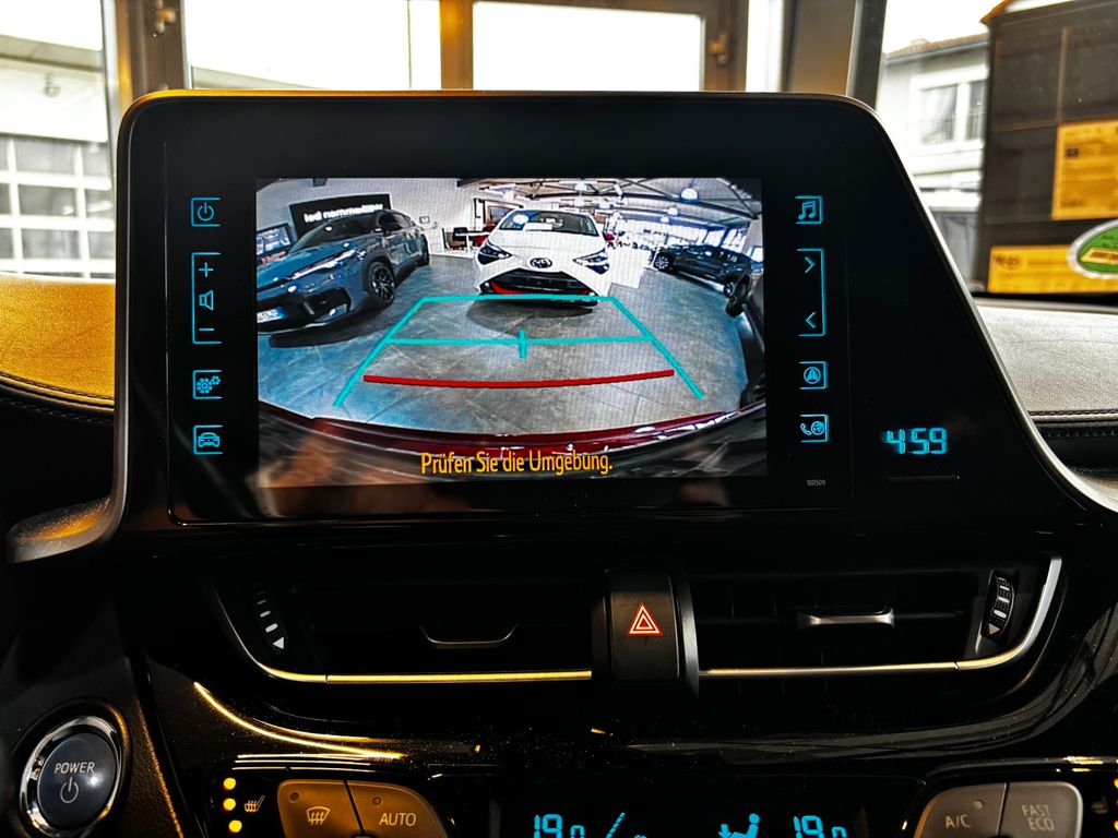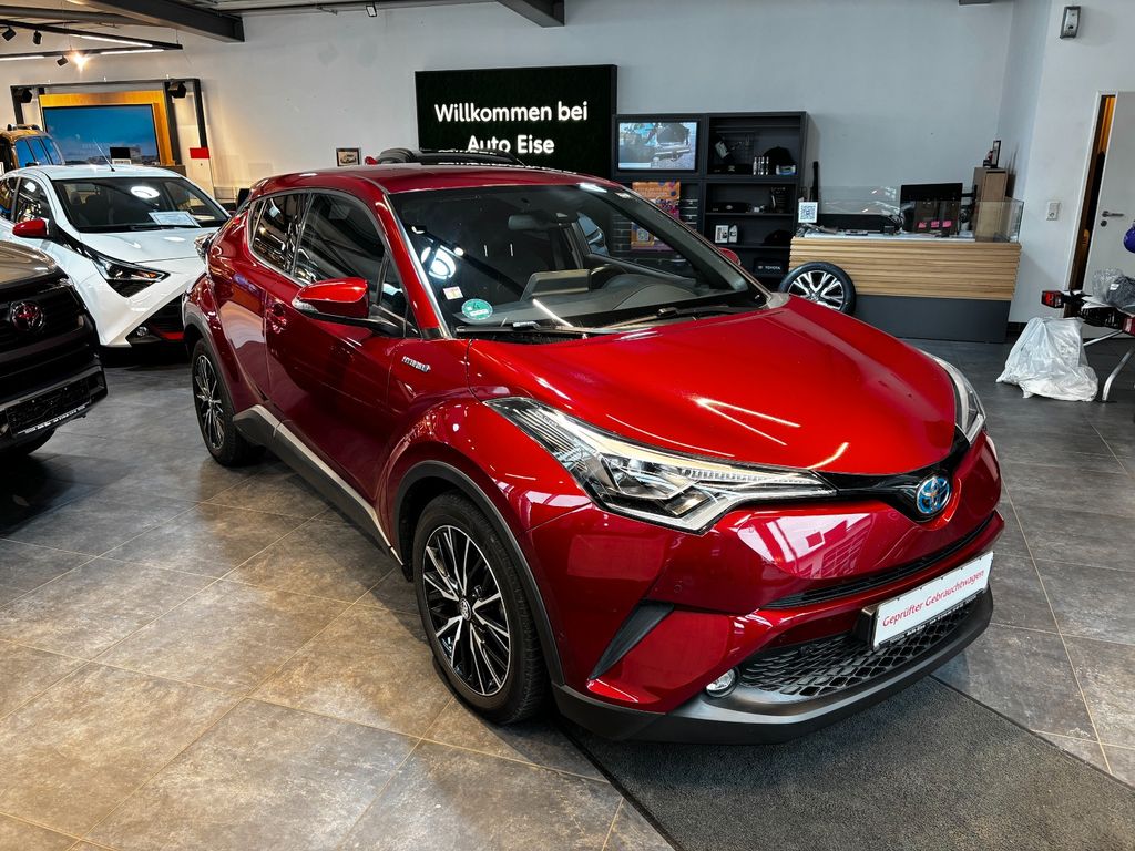 Dieser gepflegte Toyota C-HR Hybrid aus 2018 präsentiert sich in attraktivem Rot-Metallic mit schwarzem Stoffinterieur. Er überzeugt durch seine umfangreiche Ausstattung und wurde bisher von nur einem Vorbesitzer gefahren. Mit 122 PS und Frontantrieb bietet der 1.8-Liter-Vierzylinder-Hybridmotor eine angenehme Fahrleistung bei gleichzeitig umweltfreundlicher Euro 6d-temp Einstufung.Der C-HR verfügt über eine 2-Zonen-Klimaautomatik, beheizbare Sitze und ein beheiztes Lenkrad für optimalen Komfort. Das Infotainmentsystem mit Touchscreen, Navigationssystem, DAB-Radio und Bluetooth-Konnektivität sorgt für beste Unterhaltung. Zahlreiche Fahrassistenzsysteme wie adaptiver Tempomat, Spurhalteassistent, Kollisionsvermeidung und Verkehrszeichenerkennung erhöhen die Sicherheit.