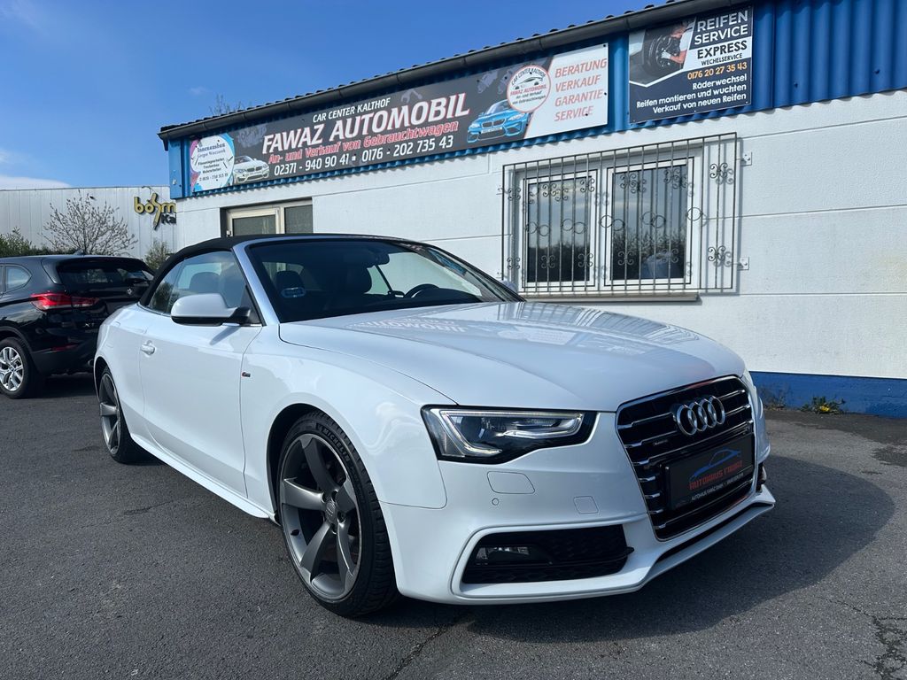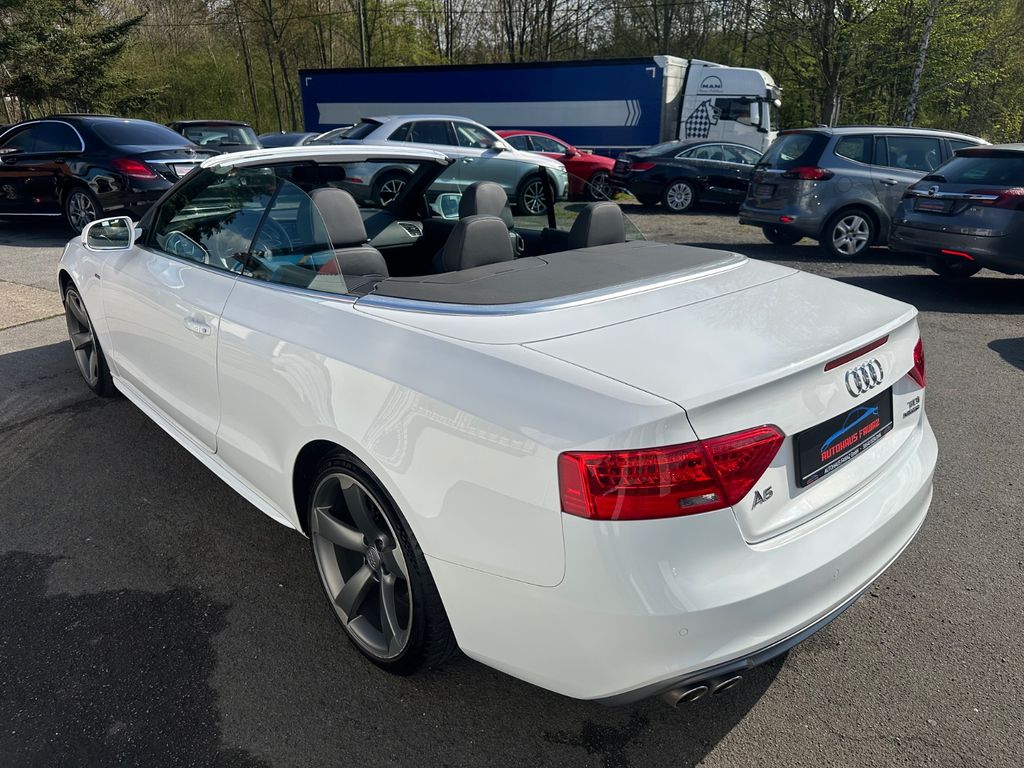 Akustik-Verdeck, Audi music interface, Ausstattungs-Paket: S line Selection, Ausstattungs-Paket: S line Sport / Plus, Einparkhilfe vorn und hinten, optisch mit Rückfahrkamera (APS Advanced), Fahrassistenz-System: Anfahr-Assistent (hold assist), Fahrassistenz-System: Fernlichtassistent, Fahrer-Informations-System (FIS) mit Farbdisplay, Glanz-Paket inkl. Kühlergrill hochglänzend schwarz, mit horizontal Chromzierleisten, Innenspiegel mit Abblendautomatik, Lenkrad (Sport/Leder - 3-Speichen) mit Multifunktion, Licht-Paket, Multi-Media-Interface MMI Navigation Plus, Sitzbezug / Polsterung: Leder / Stoff Sprint mit Logo-Prägung in Vordersitzlehnen, Sitzheizung vorn, Sound-System Bang & Olufsen, Vorrüstung Mobiltelefon/Handy mit Bluetooth-Schnittstelle, Xenon-Scheinwerfer Plus adaptive light (Abbiegelicht integriert)