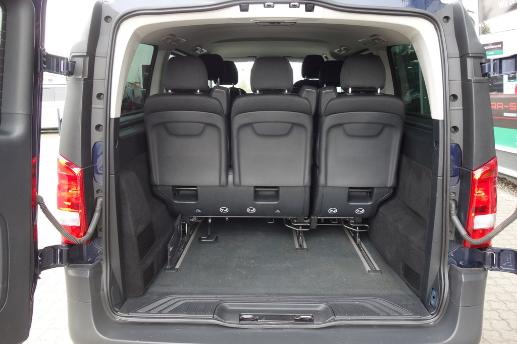 3. Bremsleuchte, Ablagenetz an Vordersitzlehne links, Adaptives Bremslicht, Airbag Beifahrerseite, Airbag Fahrerseite, Anfahrhilfe (Berganfahr-Assistent), Anzeige für Waschwasserstand, Außenspiegel asphärisch, beide, Außenspiegel elektr. verstell- und heizbar, beide, Außentemperaturanzeige, Befestigungsschienen für Dachträger, BlueEfficiency-Paket, Bodenbelag: Fahrgastraum TPO, Bremssystem mit ABS+ASR, Dachverkleidung, Design- und Ausstattungslinie Edition, Edition, Einschaltautomatik für Fahrlicht, Einstiegsgriff hinten, Fahrassistenz-System: Anfahr-Assistent (Berganfahr-Assistent), Fahrassistenz-System: Attention-Assist (Müdigkeitserkennungs-Sensor), Fahrassistenz-System: Pannenmanagement, Fahrassistenz-System: Seitenwind-Assistent, Fenster für hintere Türen / Heckklappe mit Wisch-/Waschanlage, Fenster im Lade-/FG-Raum: - elektr. ausstellbar, hinten links/rechts, Fenster im Lade-/FG-Raum: - feststehend, vorn links, Fenster im Lade-/FG-Raum: - feststehend, vorn rechts, Frontscheibe mit Scheibenantenne, Generator 250 A, Geschwindigkeits-Begrenzeranlage 210 km/h, Getriebe Automatik GTronic - (9-Stufen), Getränkehalter vorn, Gurtstraffer, Haltegriffe A-Säulen, Haltegriffe im Fond, Handschuhfach abschließbar, Harnstofftank (AdBlue): 24 Ltr., Heckscheibe heizbar, Heckscheibenwischer, Innenverkleidung gehobene Ausführung, Karosserie/Aufbau: Kombi Standard, Karosserie/Aufbau: lang, Kindersicherung, Kombiinstrument mit Pixel-Matrix-Display, Komfortbeleuchtung im Fahrgast-/Laderaum, Kommunikationsmodul (LTE) für digitale Dienste, Kopf-Airbag-System (Windowbag), Kopf-Schulter-Airbag (Thoraxbag) Fahrer-/Beifahrerseite, Lenkrad (Lenksäule mech. verstellbar), Lenkrad mit Multifunktion inkl. Reiserechner, Mercedes-Benz Notrufsystem, Mittelkonsole mit Staufach, Modellpflege, Motor 2,0 Ltr. - 174 kW CDI KAT, Nebelschlussleuchte, Parktronic-System (PTS), PKW-Zulassung, PTC Heater, Radstand 3200 mm, Radvollabdeckung, Reifendruck-Kontrollsystem, Rückspiegel innen, Schadstoffarm nach Abgasnorm Euro 6d, Scheibenwaschanlage beheizt, Scheibenwischer mit Regensensor, Schiebetür Lade-/Fahrgastraum rechts mit Verglasung, SCR-System (AdBlue-Technologie), Sicherheitsgurt-System mit Warnanlage (Fahrer-/Beifahrerseite), Sitzbezug / Polsterung: Stoff Caluma, Sitze im Fahrerhaus: Beifahrersitz heizbar, Sitze im Fahrerhaus: Fahrersitz heizbar, Sitze im Lade-/FG-Raum: 1.Reihe, 3er-Sitzbank Komfort, Sitze im Lade-/FG-Raum: 2.Reihe, 3er-Sitzbank Komfort, Sondermodell Edition, Sonnenblenden mit Spiegel (beleuchtet), Spiegel-Paket, Stahlfelgen 6,5x17, Steckdosen (12V-Anschluß) im Lade-/Fahrgastraum, 2-fach, Umfeldleuchte in Heckklappe, Verglasung hinten abgedunkelt / Schwarzglas, Vlies-Batterie 92 Ah, Warmluftkanal zum Lade-/Fahrgastraum, Wartungsintervall-Anzeige Assyst, Wärmeschutzverglasung, Regensensor