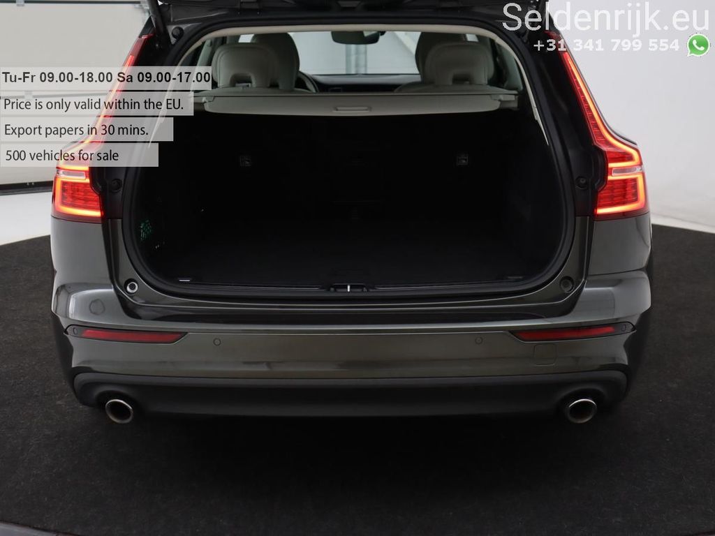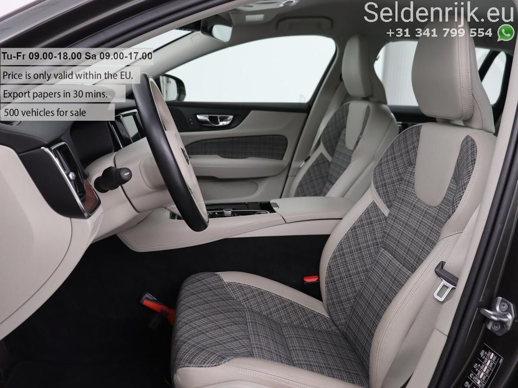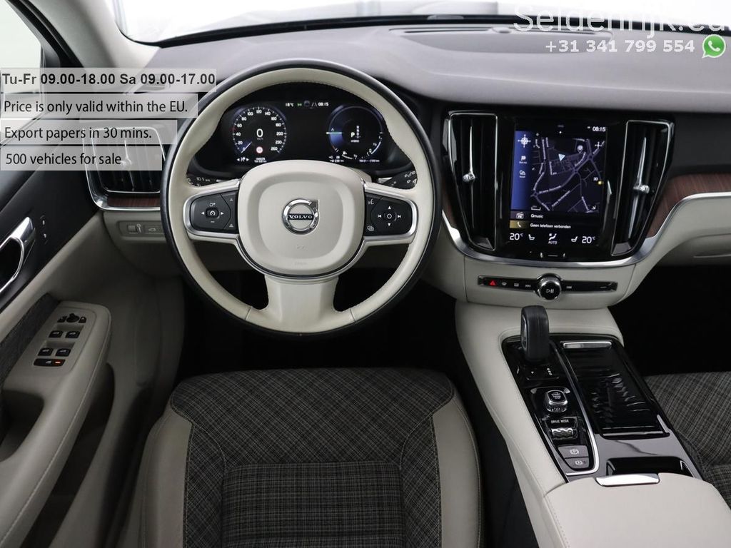 Mitten im Winter steigen Sie dank der Standheizung in ein angenehm warmes Auto. Das digitale Cockpit ist nicht nur optisch ansprechend und praktisch, sondern trägt auch aktiv zu einem sicheren und komfortablen Fahrgefühl bei. Der adaptive Tempomat bietet Sicherheit und Komfort. Der Geschwindigkeitsregler hält automatisch einen sicheren Abstand zum vorausfahrenden Fahrzeug. Im V60 finden Sie am Lenkrad nicht nur Bedienelemente für das Audiosystem und das Festplattennavigationssystem, sondern auch eine Sprachsteuerung. Ein entgegenkommendes Fahrzeug beim Abbiegen wird automatisch von der integrierten Querverkehrserkennung erkannt. Das System warnt Sie dann vor einer möglichen Kollision. Die Ausstattung dieses Volvo ist sehr umfangreich und umfasst unter anderem einen Ausparkassistenten, eine Klimaautomatik, Einparkhilfe hinten, einen Regensensor, automatisch abblendende Außenspiegel und ein Lederlenkrad.