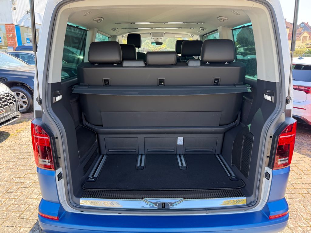Airbag Beifahrer abschaltbar, Airbag Fahrer-/Beifahrerseite, Antriebs-Schlupfregelung (ASR), Anzeige für Waschwasserstand, Armaturentafel Komfort, Audio-Navigationssystem Discover Media Streaming & Internet (Touchscreen, USB), Ausstattungs-Paket Licht + Sicht, Außenspiegel elektr. verstell-, heiz- und anklappbar, Außenspiegel konvex, links, Außenspiegel konvex, rechts, Außenspiegel und Türgriffe außen in Wagenfarbe, Bodenbelag im Fahrerhaus: Velours-Vlies, Bodenbelag: Teppich verstärkt, Bordwerkzeug, Chrom-Paket, Chromleisten Stoßfänger vorn, seitlich und Heckklappe unten, Dachverkleidung Himmel Komfort mit Luftausströmer, Dämmglas-Paket, Fahrassistenz-System: Autom. Distanzregelung (ACC) und Umfeldbeobachtungssystem (Front Assist, bis 210 km/h), Fahrassistenz-System: Bremsassistent (HBA), Fahrassistenz-System: Einparkhilfe vorn und hinten, Fahrassistenz-System: Fernlichtregulierung (Light Assist), Fahrassistenz-System: Multikollisionsbremse (Multi Collision Brake), Fahrassistenz-System: Seitenwind-Assistent, Fahrassistenz-System: Spurwechselassistent (Side Assist / Blind Spot Sensor), Fahrassistenz-System: Verkehrszeichenerkennung, Fenster im Lade-/FG-Raum: - feststehend, vorn und hinten links, Fenster im Lade-/FG-Raum: - feststehend, vorn und hinten rechts, Frontscheibe Dämmglas, Funkschlüssel (2) klappbar, Fußmatten Fahrerhaus: Velours, Gepäckraumabdeckung / Rollo, Haltegriffe A-Säulen, Handschuhfach abschließbar, Handschuhfach beleuchtet, Heckklappe mit Verglasung, Heckscheibe heizbar, mit Wischanlage, Innenausstattung: Dekoreinlagen Pewter Wave Grey, Innenleuchten im Fahrerhaus: Leseleuchten vorn (2), Innenleuchten im Lade-/FG-Raum LED, Umfeldleuchte in Heckklappe, Innenleuchten im Lade-/FG-Raum: Trittstufenleuchten, Innenraumfilter: Pollenfilter, Innenspiegel mit Abblendautomatik, Karosserie/Aufbau: Bus, Karosserievariante: Normaldach, Kindersicherung elektr. betätigt, Klapptisch integriert Lade-/Fahrgastraum, Klimaautomatik Climatronic (Fahrerhaus + Lade-/Fahrgastraum), Kühlergrill schwarz lackiert, mit Chromleisten, Ladekanten-/ Trittstufenabdeckungen in Edelstahl, Lenksäule (Lenkrad) verstellbar, LM-Felgen, Mobile Online Dienste App-Connect Wired und Wireless, Mobile Online Dienste We Connect Plus, Mobiltelefon Schnittstelle Bluetooth, Motor 2,0 Ltr. - 110 kW TDI, Multifunktionsanzeige Premium (Farbdisplay), Multimedia-Schnittstelle 2 x USB (Typ C) vorn und 2 x USB-Ladeanschluß an C-Säule, Notrufsystem, Radioempfang digital (DAB+), Radstand 3000 mm, Reifen-Reparaturkit, Reifenkontroll-Anzeige, Schadstoffarm nach Abgasnorm Euro 6d, Scheinwerfer und Heckleuchten LED, Schiebetür Lade-/Fahrgastraum rechts, SCR-System (AdBlue-Technologie), Seitenairbag / Kopfairbag (Curtain-Airbag) vorn, Seitenscheiben Dämmglas, Servolenkung elektro-mechanisch, Sitzbezug / Polsterung: ArtVelours / Kunstleder, Sitze im Fahrerhaus: Beifahrersitz Komfort, Sitze im Fahrerhaus: Fahrer- und Beifahrersitz heizbar, Sitze im Fahrerhaus: Fahrer- und Beifahrersitz höhenverstellbar, Sitze im Fahrerhaus: Fahrersitz Komfort, Sitze im Fahrerhaus: Lendenwirbelstützen Fahrer- und Beifahrersitz, Sitze im Lade-/FG-Raum: 1.Reihe, 2 Drehsitze, Sitze im Lade-/FG-Raum: 2.Reihe, 3er-Sitzbank, Sonnenblenden mit Spiegel (beleuchtet), Sonnenschutzrollo im Fahrgastraum, Sprachsteuerungs-System, Start/Stop-Anlage Motor, Steckdosen (12V-Anschluß) im Fahrerhaus (2 Stück), Steckdosen (12V-Anschluß) im Lade-/Fahrgastraum (2 Stück), Stoßfänger in Wagenfarbe, Verglasung hinten abgedunkelt, Verkleidung im Lade-/FG-Raum: Komfort, Verzurrösen Laderaum, Warnanlage für Sicherheitsgurte (Fahrer-/Beifahrerseite), Zuheizer, Zul. Gesamtgewicht 3,00 t, Innenspiegel automatisch abblendend, Regensensor, Sitzheizung vorn