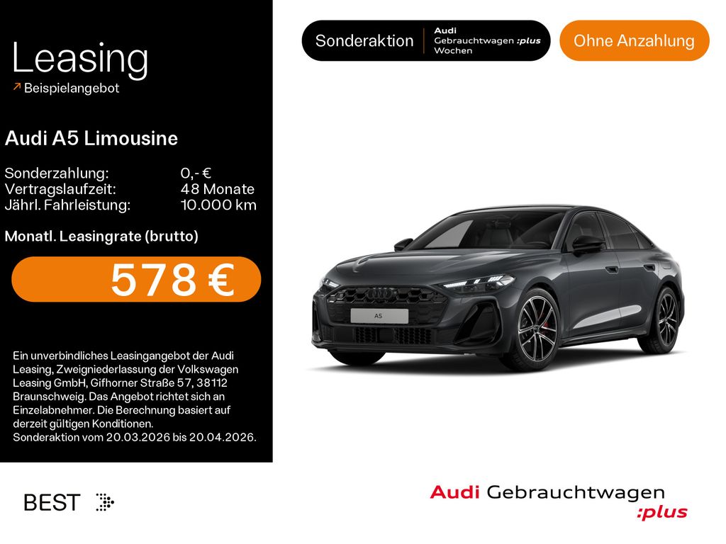 Highlights:Anschlussgarantie, Laufzeit 3 Jahre im Anschluss an die Herstellergarantie, maximale Gesamtlaufleistung 100.000 km; Panorama-Glasdach mit schaltbarer Transparenz; Head-Up Display; Audi virtual cockpit plus; Bang & Olufsen Premium Soundsystem mit 3D Klang;