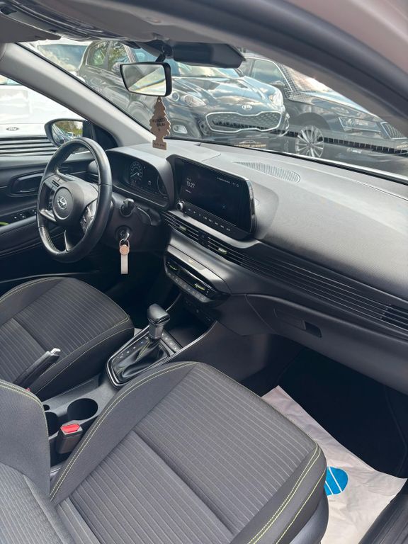 3. Bremsleuchte, 6 Lautsprecher, Airbag Beifahrerseite, Airbag Beifahrerseite abschaltbar, Airbag Fahrerseite, Ambiente-Beleuchtung, Audiosystem: Radio RDS, Außenspiegel elektr. verstell- und heizbar, beide, Außenspiegel lackiert, Blinkleuchte in Außenspiegel integriert, Bordcomputer, Bremsassistent, Dachspoiler, Digital Cockpit (Instrumentenanzeige Digital), Einschaltautomatik für Fahrlicht / Lichtsensor, Elektr. Bremskraftverteilung, Elektron. Stabilitätskontrolle (ESC) mit Bremsassistent, Fahrassistenz-System: aktiver Spurhalteassistent (LKAS, Lane Keep Assist System), Fahrassistenz-System: Aufmerksamkeits-Assistent, Fahrassistenz-System: Autonome Notbremsfunktion inkl. Frontkollisionswarnung (FCA), Fahrassistenz-System: Berganfahrhilfe, Fahrassistenz-System: Fahrprofilauswahl (Drive Mode), Fahrassistenz-System: Fernlichtassistent, Fahrassistenz-System: Insassenalarm (Rear Occopant Alert, ROA), Fahrassistenz-System: Multikollisionsbremse (Multi Collision Brake), Fahrassistenz-System: Sicherheitssystem mit automatischem Notruf (ERA GLONASS / eCall), Fahrassistenz-System: Verkehrszeichenerkennung, erweitert (Geschwindigkeits-Regel-/Begrenzeranlage), Fensterheber elektrisch hinten, Freisprecheinrichtung Bluetooth, Funktions-Paket, Gegenlenkunterstützung (Vehicle Stability Management, VSM), Gepäck-/Laderaumleuchte, Gepäckraumabdeckung / Rollo, Getriebe 7-Gang - Doppelkupplungsgetriebe DCT, Getränkehalter vorn, Gurtstraffer, Heckscheibe heizbar, Isofix-Aufnahmen für Kindersitz, Karosserie: 5-türig, Klimaautomatik, Kopf-Airbag-System, Kopfstützen hinten verstellbar, Kühlergrill schwarz (glanzlackiert), Lenkrad (4-Speichen), Lenksäule (Lenkrad) höhenverstellbar, Lenksäule (Lenkrad) längsverstellbar, Leseleuchte, Mild-Hybrid 74 kW (Motor 1,0 Ltr. - 74 kW T-GDI), Motorhaubenisolierung, Otto-Partikelfilter (OPF), Radioempfang digital (DAB+), Reifen-Reparaturkit, Reifendruck-Kontrollsystem, Rückfahrkamera, Rücksitzlehne geteilt/klappbar, Schadstoffarm nach Abgasnorm Euro 6d, Schalt-/Wählhebelgriff Leder, Scheibenbeschlagerkennung / Regelung, Seitenairbag vorn, Sicherheitsgurte vorn höhenverstellbar, Sitz vorn links höhenverstellbar, Sitzbezug / Polsterung: Stoff, Sonnenblenden mit Spiegel (beleuchtet), Start/Stop-Anlage, Steckdose (12V-Anschluß) vorn, Türgriffe außen Wagenfarbe, USB-Anschluss + AUX-IN-Anschluss, USB-Anschluss hinten, USB-Anschluss Mittelkonsole, Verglasung getönt, Warnanlage für Sicherheitsgurte, Fahrer-/Beifahrerseite, Wireless SmartLink (Apple CarPlay)