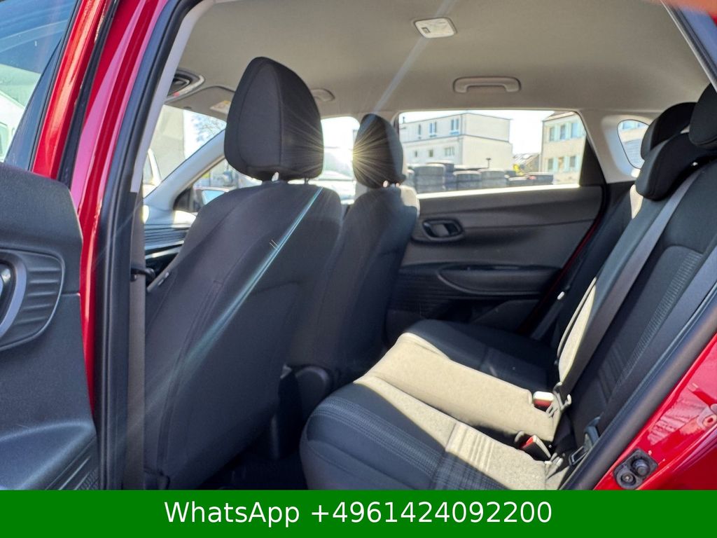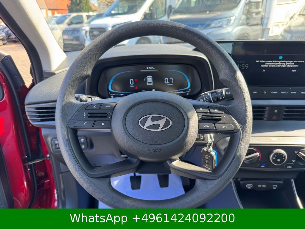 4 Lautsprecher, Airbag Beifahrerseite, Airbag Beifahrerseite abschaltbar, Airbag Fahrerseite, Audio-Navigationssystem, Audiosystem: Radio RDS, Außenspiegel elektr. verstell- und heizbar, beide, Außenspiegel lackiert, Blinkleuchte in Außenspiegel integriert, Bordcomputer, Dachspoiler, Dachspoiler Wagenfarbe, Einparkhilfe hinten, Einschaltautomatik für Fahrlicht / Lichtsensor, Elektron. Stabilitätskontrolle (ESC) mit Bremsassistent, Fahrassistenz-System:Fahrassistenz-System: Aufmerksamkeits-Assistent, Fahrassistenz-System: Autonome Notbremsfunktion inkl. Frontkollisionswarnung (FCA), Fahrassistenz-System: Berganfahrhilfe, Fahrassistenz-System: Fernlichtassistent, Fahrassistenz-System: Insassenalarm (Rear Occopant Alert, ROA), Fahrassistenz-System: Multikollisionsbremse (Multi Collision Brake), Fahrassistenz-System: Sicherheitssystem mit automatischem Notruf (ERA GLONASS / eCall), Fahrassistenz-System: Verkehrszeichenerkennung, erweitert (Geschwindigkeits-Regel-/Begrenzeranlage), Fahrer-Informations-System (Display 4,2 Zoll), Fensterheber elektrisch hinten, Freisprecheinrichtung Bluetooth, Gepäck-/Laderaumleuchte, Gepäckraumabdeckung / Rollo, Gurtstraffer, Heckscheibe heizbar, Karosserie: 5-türig, Kopf-Airbag-System, Kopfstützen hinten verstellbar, Kühlergrill schwarz (mattlackiert), Lenkrad (4-Speichen), Lenksäule (Lenkrad) höhenverstellbar, Lenksäule (Lenkrad) längsverstellbar, Lifetime MapCare (Internetbasierende Dienste), Modellpflege, Motor 1,2 Ltr. - 58 kW KAT, Radioempfang digital (DAB+), Reifen-Reparaturkit, Reifendruck-Kontrollsystem, Rückfahrkamera, Rücksitzlehne geteilt/klappbar, Schadstoffarm nach Abgasnorm Euro 6e, Seitenairbag vorn, Service-System: Remote Services (Blue Link), Sitz vorn links höhenverstellbar, Sitzbezug / Polsterung: Stoff, Sonnenblenden mit Spiegel, Start/Stop-Anlage, Steckdose (12V-Anschluß) vorn, Türgriffe außen Wagenfarbe, USB-Anschluss (Typ C), USB-Anschluss hinten, USB-Anschluss hinten (Typ C), USB-Anschluss Mittelkonsole, Verglasung getönt, Warnanlage für Sicherheitsgurte, Fahrer-/Beifahrerseite, Wireless SmartLink (Apple CarPlay)