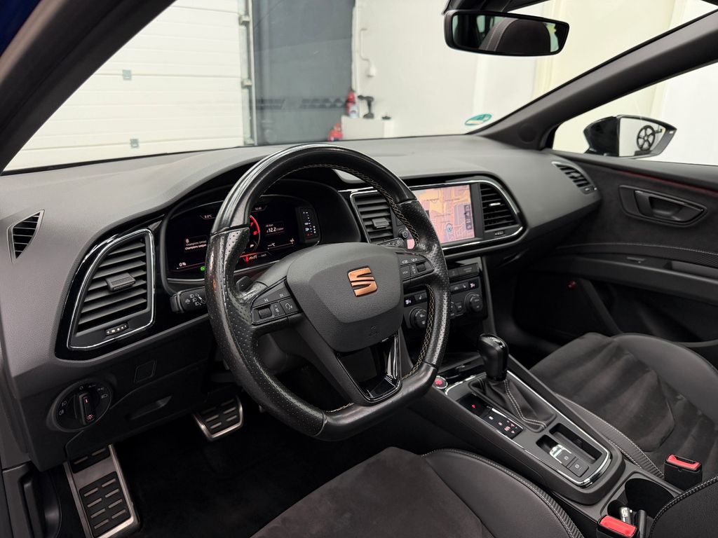 3. Bremsleuchte, Ablage-Paket, Ablagetasche an Vordersitzlehnen, Airbag Beifahrerseite abschaltbar, Airbag Fahrer-/Beifahrerseite, Ambiente-Beleuchtung LED, Antriebs-Schlupfregelung (ASR), Antriebsart: Allradantrieb, Audio-Navigationssystem mit Touchscreen Farbbildschirm, Außenspiegel elektr. verstell-, heiz- und anklappbar, beide, Außenspiegel schwarz, Außentemperaturanzeige, Bordcomputer, Bremsassistent, Dachhimmel schwarz, Dynamic-Paket, Elektron. Differentialsperre (EDS), Fahrassistenz-System: Berganfahr-Assistent (Hill-Holder), Fahrassistenz-System: Fahrprofilauswahl (SEAT Drive Profile), Fahrassistenz-System: Umfeldbeobachtungssystem (Front assist) mit City-Notbremsfunktion, Fensterheber elektrisch hinten, Gepäckraumabdeckung / Rollo, Handschuhfach beleuchtet, Heckspoiler, Innenraumlicht-Paket LED, Isofix-Aufnahmen für Kindersitz, Karosserie: 5-türig, Klimaanlage Climatronic 2-Zonen, Knieairbag Fahrerseite, Kofferraumbeleuchtung, Kombiinstrument digital (virtual cockpit), Kopf-Airbag-System, Kopfstützen hinten (3-fach), Kopfstützen vorn verstellbar, Laderaumboden variabel und herausnehmbar, Lendenwirbelstütze Sitz vorn links, verstellbar, Lendenwirbelstütze Sitz vorn rechts, verstellbar, Licht- und Sicht-Paket, Mittelarmlehne hinten, Modellpflege, Motor 2,0 Ltr. - 221 kW 16V TSI, Otto-Partikelfilter (OPF), Parkbremse elektrisch, Reifenkontroll-Anzeige, Rücksitzlehne geteilt/klappbar (1/3-2/3), Rücksitzlehnen umklappbar mit Fernentriegelung im Kofferraum, Schadstoffarm nach Abgasnorm Euro 6d-TEMP, Schalt-/Wählhebelgriff Leder, Scheinwerfer LED, Seitenairbag, Seitenscheiben hinten und Heckscheibe abgedunkelt, Sitz vorn links höhenverstellbar, Sitz vorn rechts höhenverstellbar, Sitzbezug / Polsterung: Leder, Sitzbezug / Polsterung: Leder / Alcantara, Sonnenblende links mit Spiegel (beleuchtet), Sonnenblende rechts mit Spiegel (beleuchtet), Sport-Fahrwerk FR / Cupra, Start/Stop-Anlage, Steckdose (12V-Anschluß) im Koffer-/Laderaum, Steckdose (12V-Anschluß) vorn, Wärmeschutzverglasung