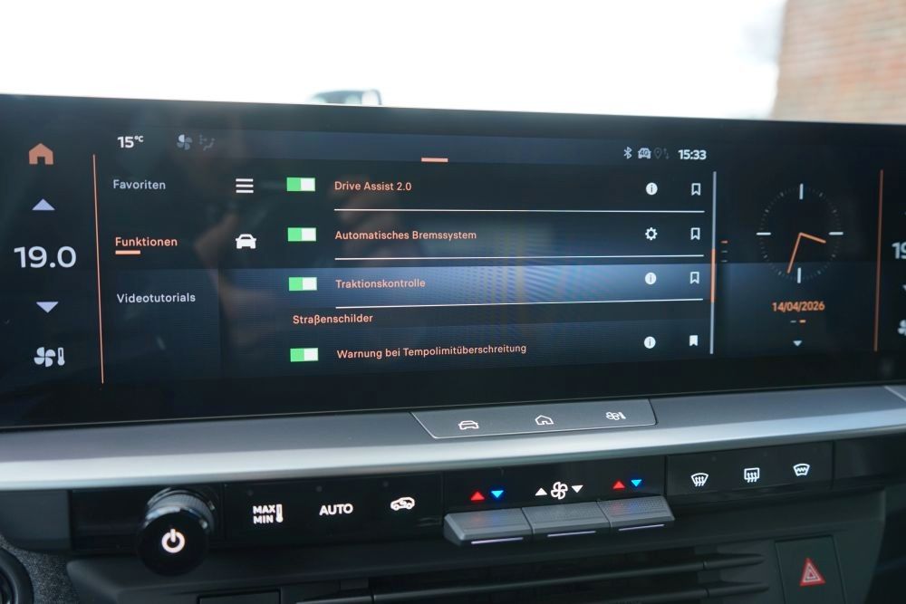 Abbiegelicht, Audio-Navigationssystem Multimedia Navi (16" Touchscreen-Farbdisplay), Blinkleuchten LED, Einschaltautomatik für Fahrlicht, Ergonomiesitz vorn links/rechts, Fahrassistenz-System: Berganfahr-Assistent (HSA, Hill Start Assist), Fahrassistenz-System: Fernlichtassistent, Fensterheber elektrisch hinten, Feststellbremse elektrisch, Gepäck-/Laderaumboden doppelt, Getriebe Automatik - Doppelkupplungsgetriebe (6-Stufen, Hybrid), Heckleuchten LED, Induktionsladeschale für Smartphone (Wireless Charging), Innenspiegel mit Abblendautomatik, Isofix-Aufnahmen für Kindersitz an Beifahrersitz, Isofix-Aufnahmen für Kindersitz an Rücksitz, Karosserie: 5-türig, Kindersicherung, Klimaautomatik 2-Zonen, Lenkrad heizbar, Leseleuchten Seitentüren (Eco Kuppel-LED), Leseleuchten vorn (Eco Kuppel-LED), Leuchtweitenregelung automatisch, LM-Felgen, Motor 1,2 Ltr. - 100 kW (System: 107 kW) Mild-Hybrid, Otto-Partikelfilter (OPF), Parkpilotsystem vorn und hinten, Radstand Standard, Reifen-Reparaturkit, Reifendruck-Kontrollsystem, Rückfahrkamera mit 180° Umgebungsansicht, Rücksitzlehne geteilt (40:20:40), Schadstoffarm nach Abgasnorm Euro 6e, Sitzheizung vorn, Sonnenblenden mit Spiegel (LED-Beleuchtung), Wärmeschutzverglasung hinten abgedunkelt (Solar-Protect),Innenspiegel automatisch abblendend, Regensensor, Sitzheizung vorn