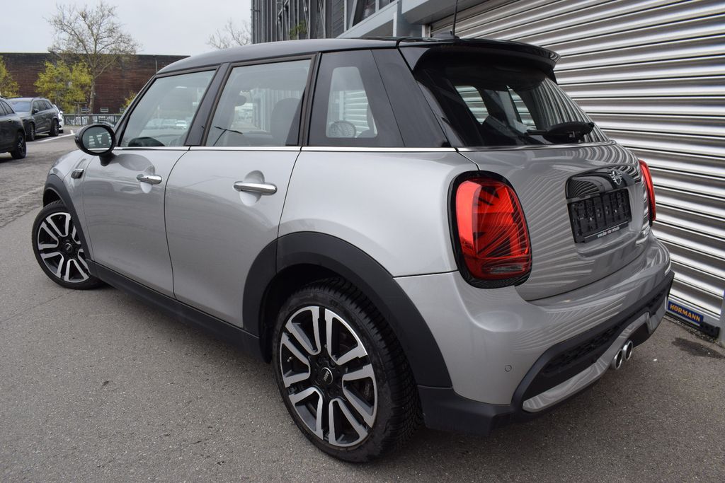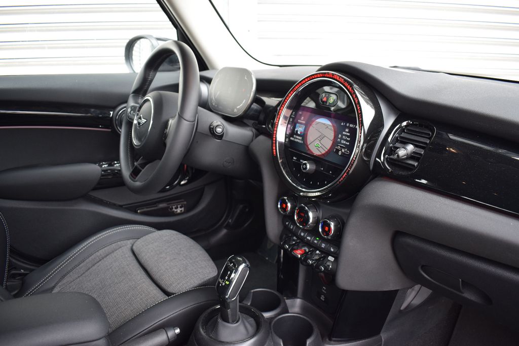 3. Bremsleuchte, Airbag Fahrer-/Beifahrerseite, Audiosystem MINI Visual Boost (inkl. LC-Display), Auspuffanlage (2-Rohr-Anlage) mit Chromblenden, Ausstattungs-Paket: Premium, Autom. Begleitfunktion der Beleuchtung (Follow me home), Außenspiegel elektr. verstellbar, Außentemperaturanzeige, Blinkleuchten in Weiß, Bordcomputer, Bremsassistent, Bremsenergierückgewinnung, Classic Trim, DAB-Tuner (Radioempfang digital), Dach + Außenspiegel schwarz lackiert, Dachhimmel in Satellite Grey, Dachspoiler, Dynamische Bremsleuchte, Elektron. Bremskraftverteiler, Exterieurumfänge Sidescuttles mit integrierten Blinkern, Fahrassistenz-System: Performance Control, Fensterheber elektrisch vorn + hinten, Freisprecheinrichtung Bluetooth mit USB-/Audio-Schnittstelle, Fußmatten Velours, Getränkehalter vorn und hinten, Griffleiste Heckklappe in schwarz hochglänzend, Heckleuchten Union Jack, Heckscheibenwischer, Innenausstattung: Interieur-Oberfläche Piano Black, Innenausstattung: Türverkleidungen und Seitenverkleidung Carbon Black, Isofix-Aufnahmen für Kindersitz, Karosserie: 5-türig, Kopf-Airbag-System hinten, Kopf-Airbag-System vorn, Kurvenbremskontrolle (Corner-Brake-Control, CBC), Lenkrad (Sport/Leder), Lenksäule (Lenkrad) mechan. verstellbar, Leuchtweitenregelung, LM-Felgen, Metallic-Lackierung in Melting Silver, Modellpflege (2), Motor 2,0 Ltr. - 131 kW 16V, Multifunktion für Lenkrad, Otto-Partikelfilter (OPF), Personalisierungssystem (Personal Profile), Rücksitzlehne geteilt/klappbar, Schadstoffarm nach Abgasnorm Euro 6d, Schalt/Wählhebelgriff Leder, Schaltpunktanzeige, Scheibenwaschdüsen und Außenspiegel beheizt, Schweller, Stoßfängerecken und Radlaufverbreiterung schwarz, Seitenairbag vorn, Service-System: ConnectedDrive Services, Service-System: Intelligenter Notruf inkl. TeleServices, Service-System: Remote Services, Sitz vorn links mechanisch höhenverstellbar, Sitz vorn rechts höhenverstellbar, Sitzausstattung: 5-Sitzer, Sitzbezug / Polsterung: Stoff/Kunstleder-Kombination Black Pearl, Sitze vorn mechanisch verstellbar, Sonnenblenden mit Spiegel, Start-Stop-Knopf, Start/Stop-Anlage (Funktion), Türgriffe innen verchromt, Warndreieck, Wärmeschutzverglasung getönt, Zentralinstrument mit LED-Ring