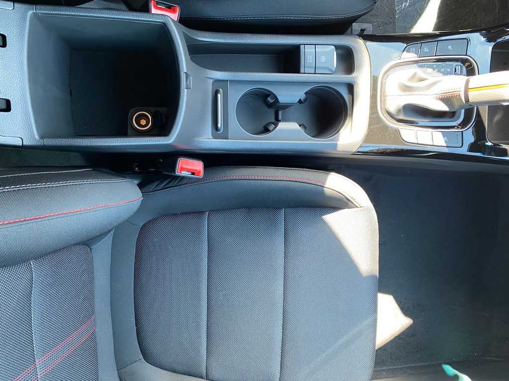 - Sitzpolsterung in Stoff-Leder-Kombination Schwarz mit roten Ziernähten
