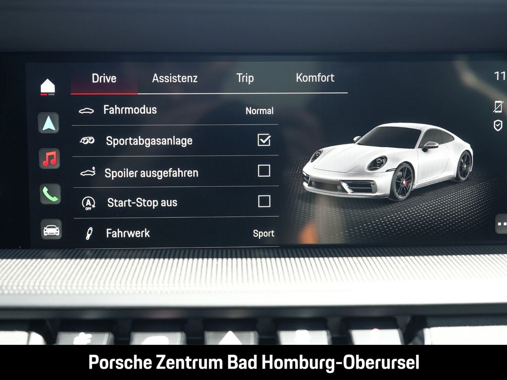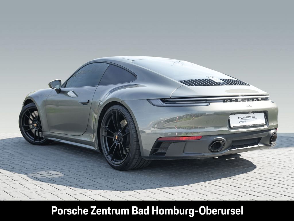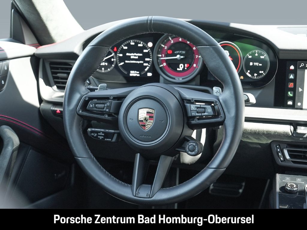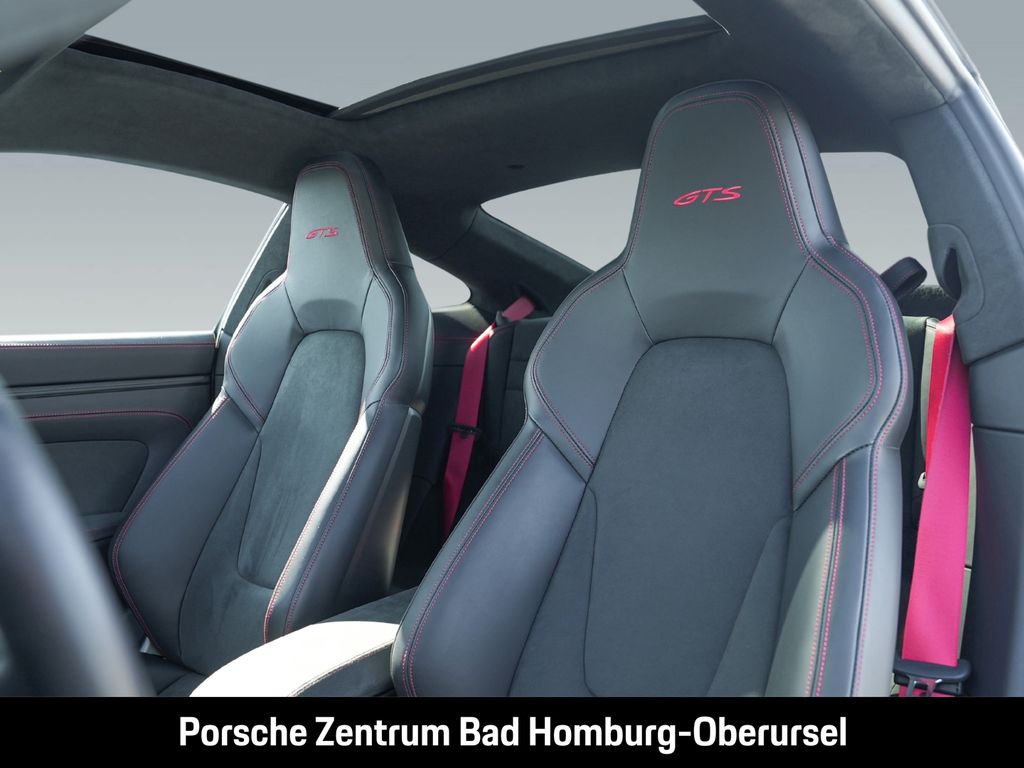 - Weiteres: Im Zuge der Aufbereitung kann es zu Nachlackierungen und dem Austausch einzelner Bauteile gekommen sein. Für nähere Informationen wenden Sie sich bitte an unser Verkaufspersonal., (3FE) Elektrisches Schiebe-/Hubdach aus Glas, (VR4) SportDesign Schwellerverkleidungen, (2RA) Schriftzug „911, (6F0) Entfall Modellbezeichnung GTS auf den Türen, (2UH) Liftsystem Vorderachse, (1N3) Servolenkung Plus, (0N5) Hinterachslenkung, (1LR) Bremssättel lackiert in Schwarz (hochglanz), (0I2) 90 Liter Kraftstofftank, (4A3) Sitzheizung vorn, (2PJ) GT-Sportlenkrad, beheizt, (7V8) Zifferblatt Drehzahlmesser karminrot, (5TX) Interieur-Paket Carbon matt, (2C6) Verkleidung Lenksäule Leder, (6NN) Dachhimmel Race-Tex, (3B5) Blenden Gurtaustritt Race-Tex (in Verbindung mit ISOFIX), (9VL) BOSE® Surround Sound-System, (7I2) Porsche Vehicle Tracking System Plus (PVTS Plus), (8JU) LED-Matrix Hauptscheinwerfer abgedunkelt inkl. Porsche Dynamic Light System Plus (PDLS Plus), (6XV) Elektrisch anklappbare Außenspiegel inkl. Spiegelumfeldbeleuchtung, (4KF) Privacy-Verglasung, (7Y1) Spurwechselassistent, (KA2) ParkAssistent vorn und hinten inkl. Rückfahrkamera, (QQ2) Licht-Design-Paket, (P60) Spurhalteassistent inklusive Verkehrszeichenerkennung